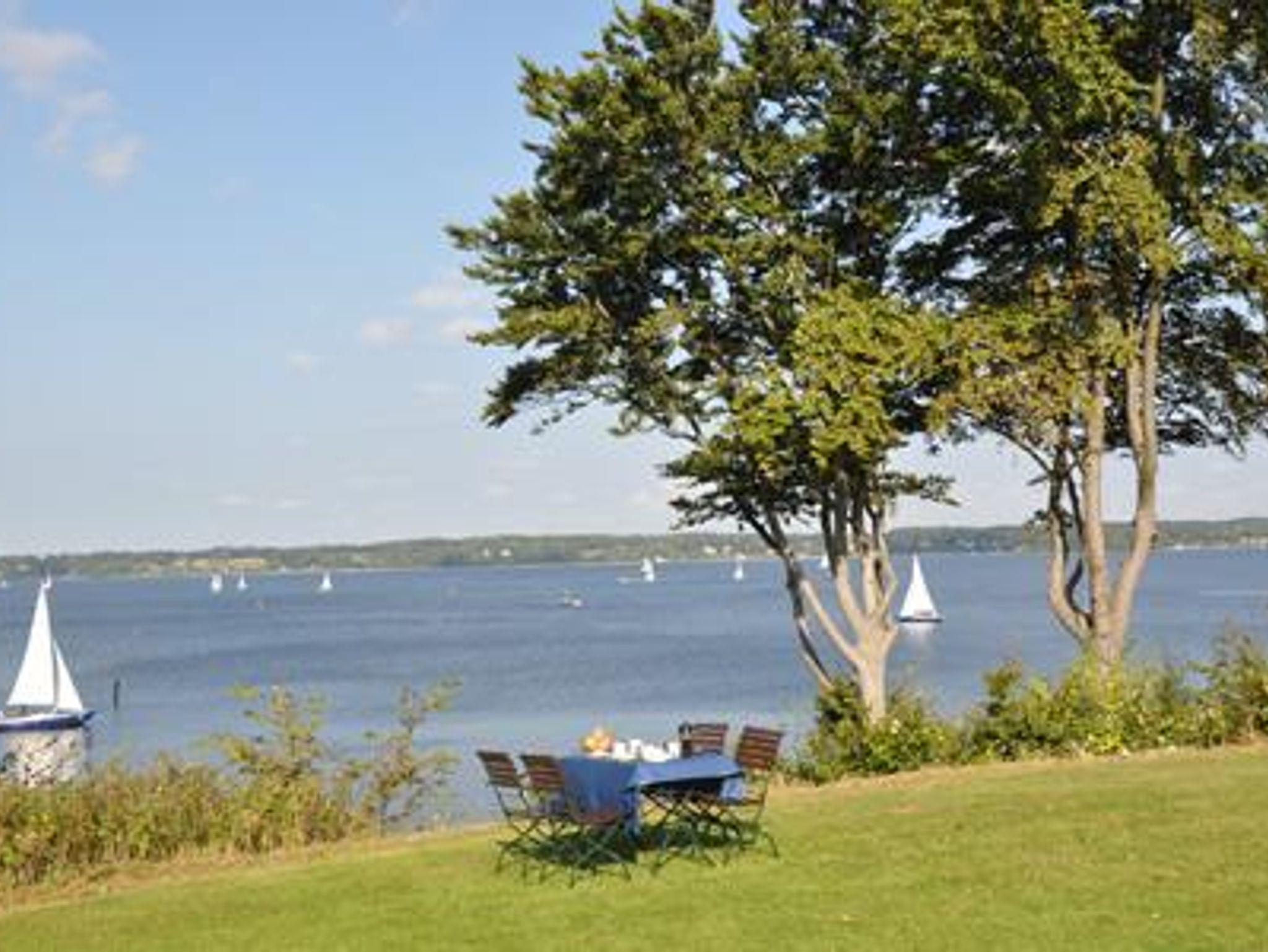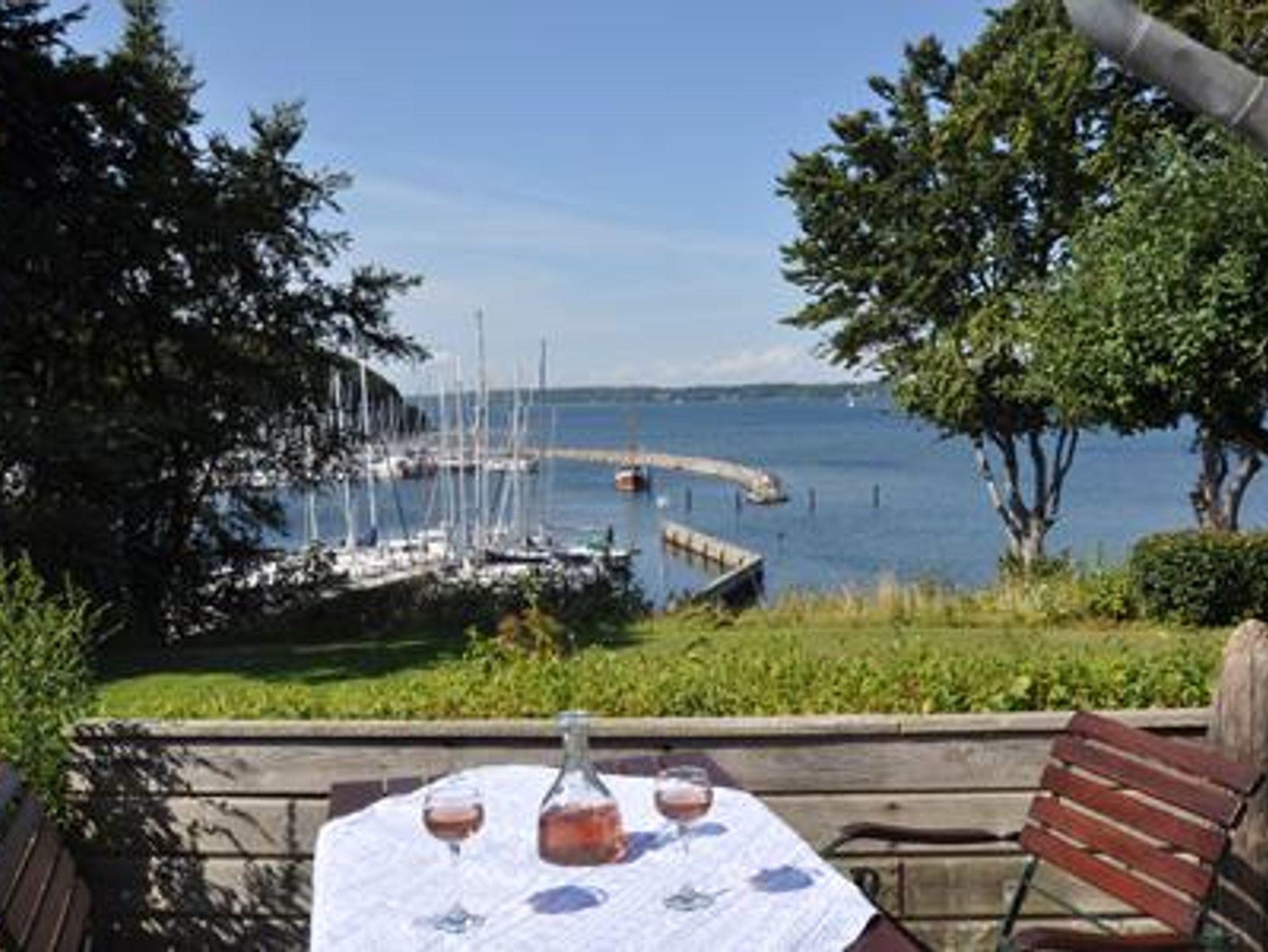 Ruhige Ferienwohnung mit Meerblick am Yachthafen in Glücksburg, großer Garten und Strandzugang.