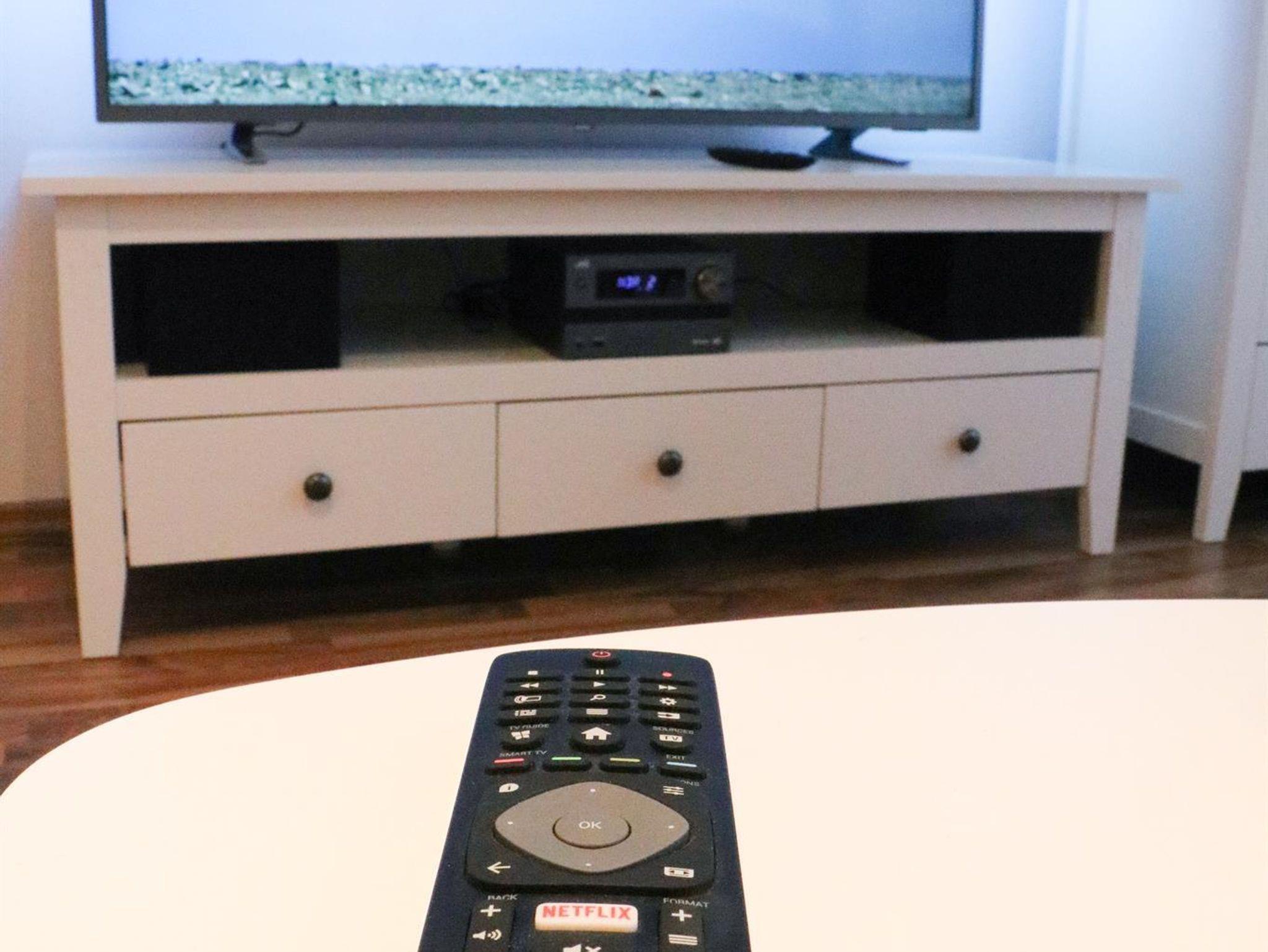 • 1 Wohnzimmer mit Schlafcouch für die 3. Person, 50 Zoll Smart-TV mit NETFLIX Zugang, Essecke