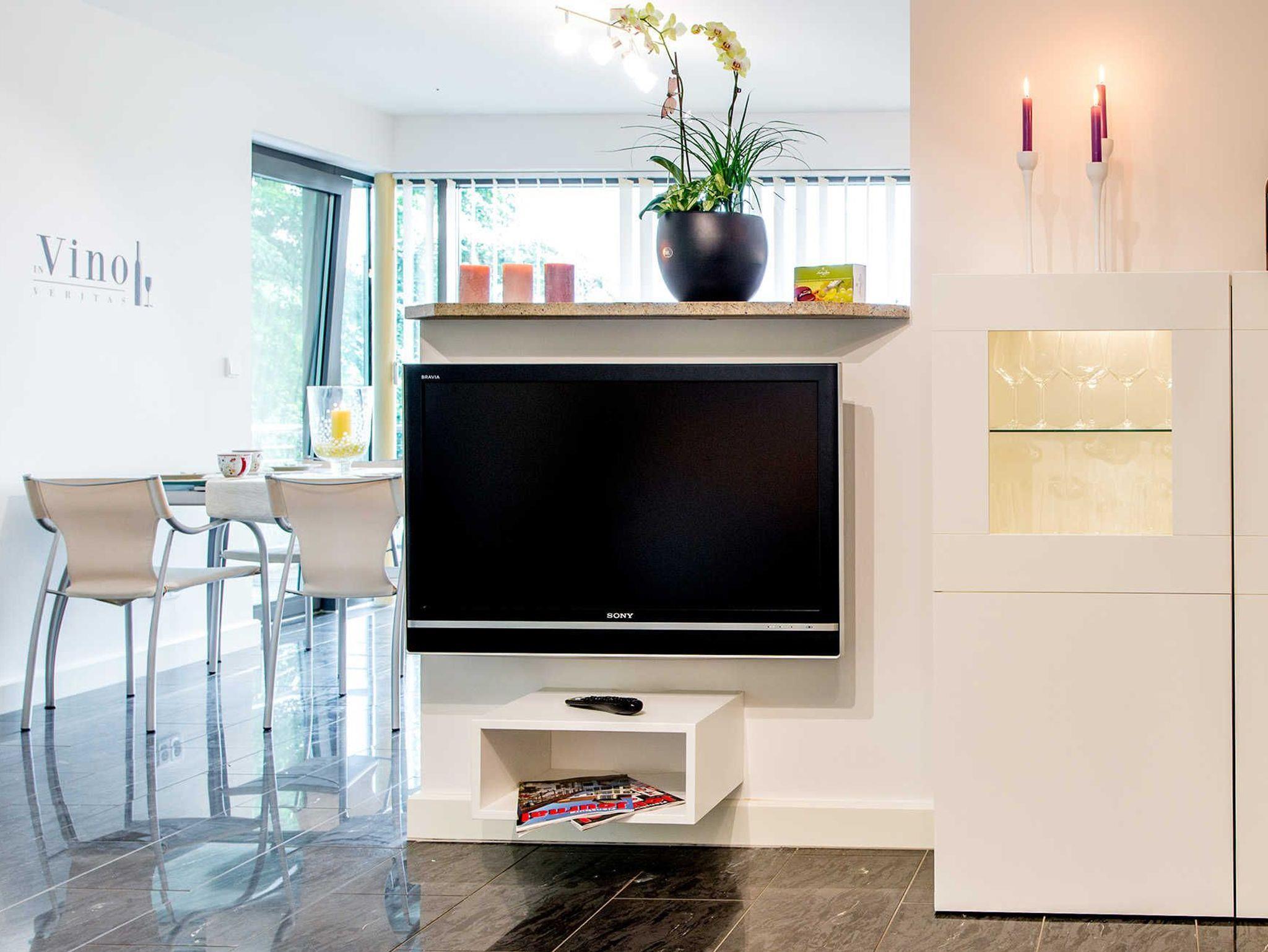 • Der helle Wohnraum lädt zu gemütlichen Abendstunden ein. Ob Sie eine DVD schauen möchten oder einfach nur den Ausblick auf die Förde und die vielen Segler und Wassersportler genießen! Vom Wohnraum aus gelangen Sie über die Glasfront mit Schiebetür auf eine geräumige Eckterrasse ebenfalls mit Fördeblick.