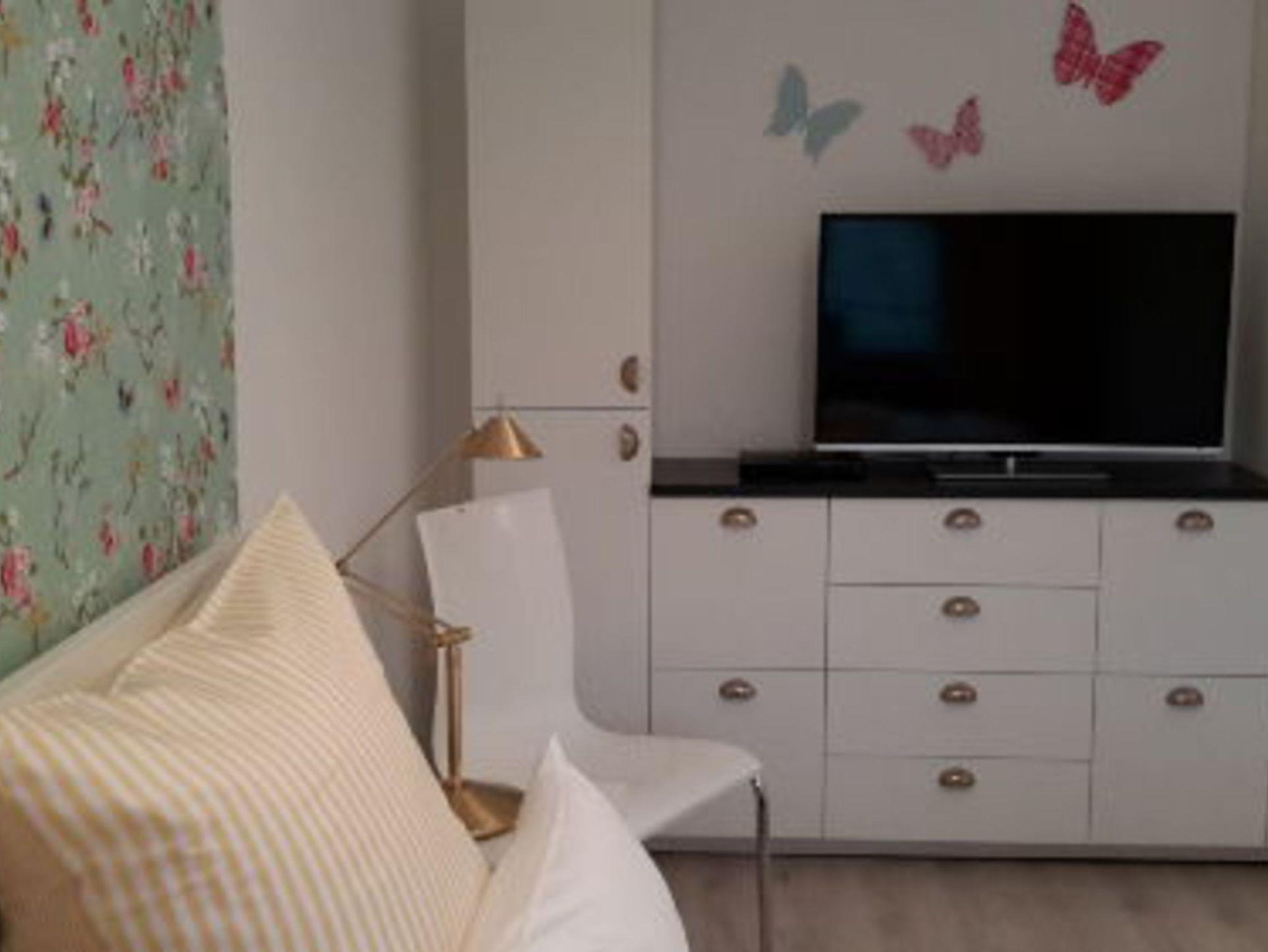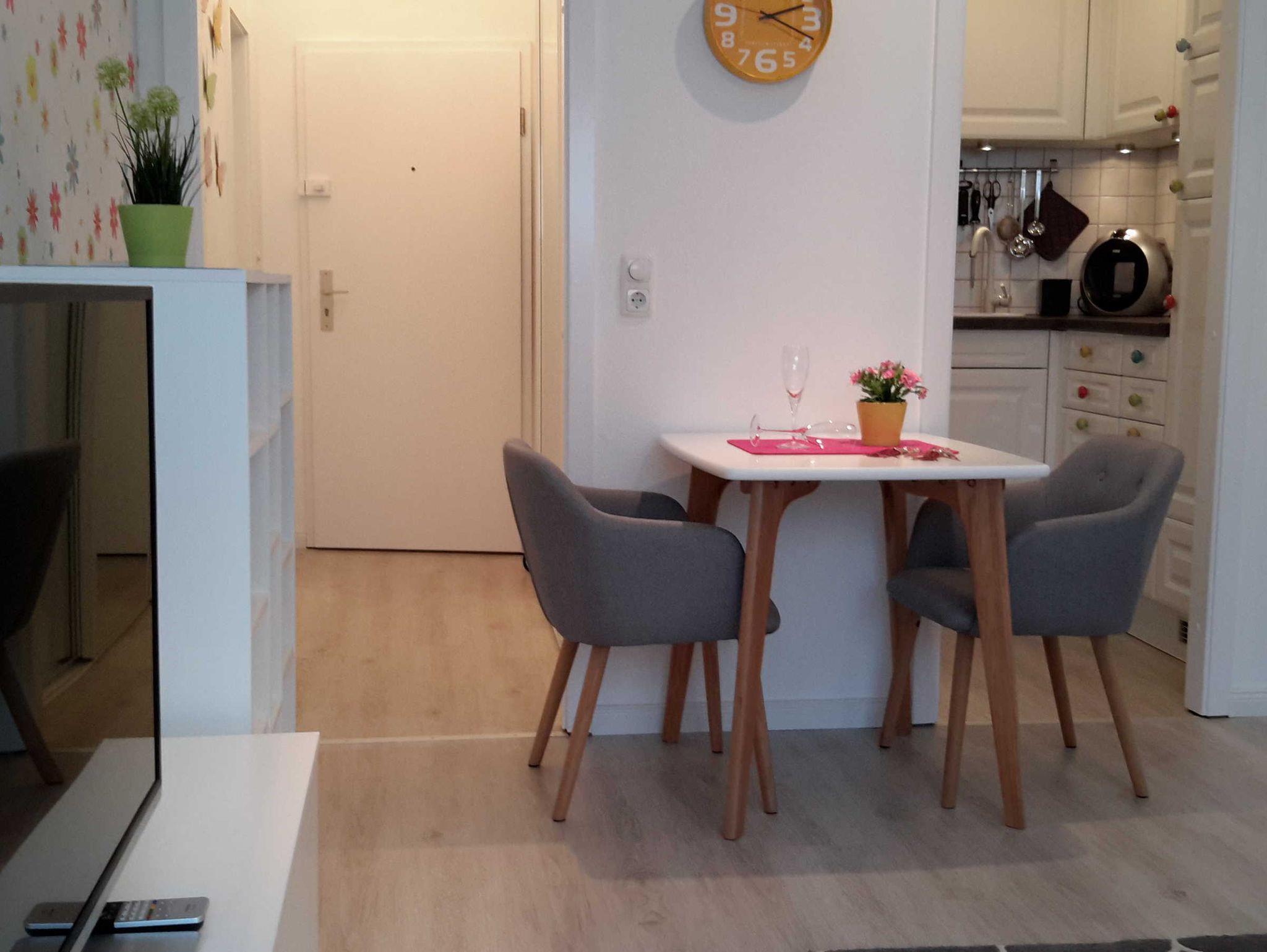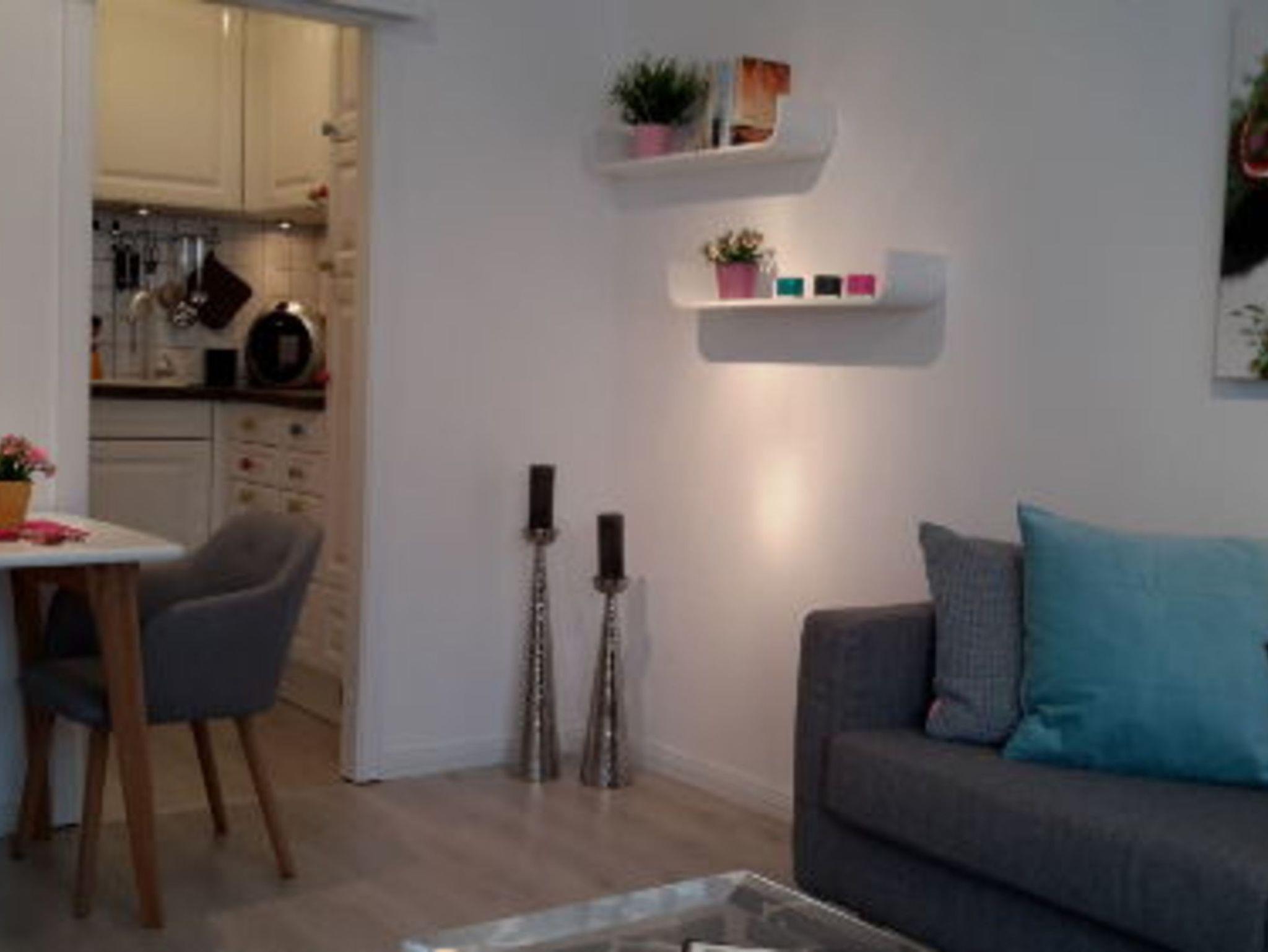 Die lichtdurchflutete Wohnung liegt in der 3. Etage und besteht aus einem gemütlichen Wohnzimmer mit Essplatz und einem Schlafzimmer mit Doppelbett und riesigem Schrank. In beiden Räumen wird man mit TV-Flachbildschirmen mit Kabelanschluss, Blu-Ray-Playern und Mückenschutzgittern verwöhnt. Eine Einbauküche, ein Duschbad und ein Balkon mit Gartenmöbeln komplettiert die Ferienwohnung.