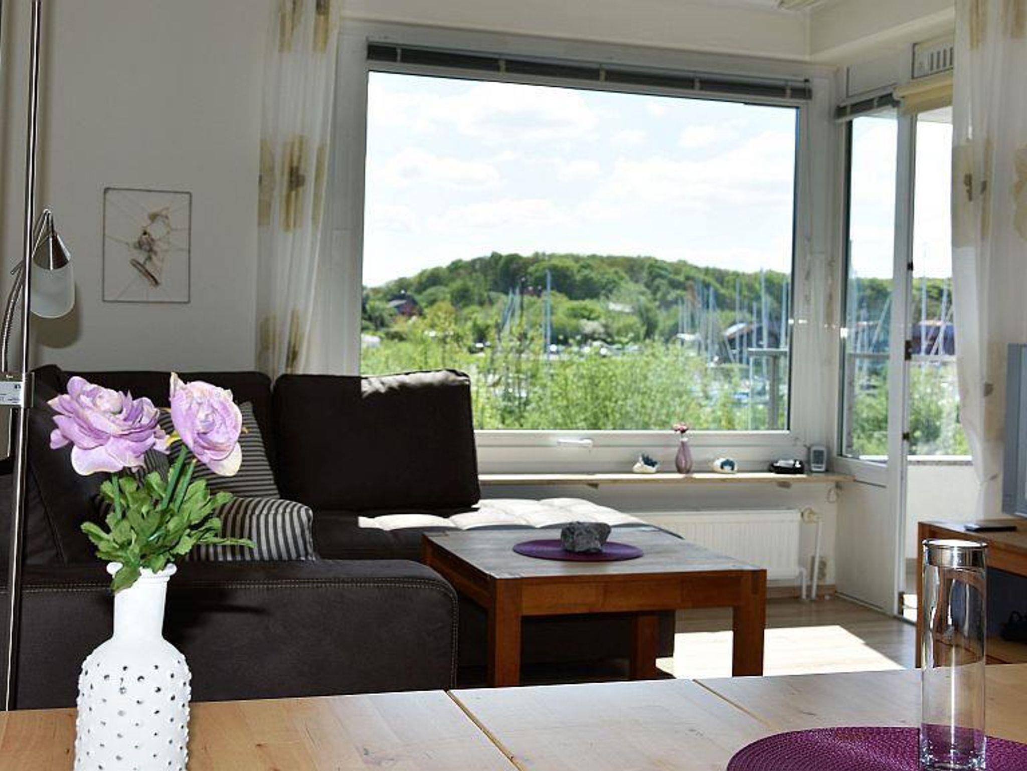 Das Ferienappartment liegt direkt an der Flnsburger Innenförde mit Meerblick und verfügt über: