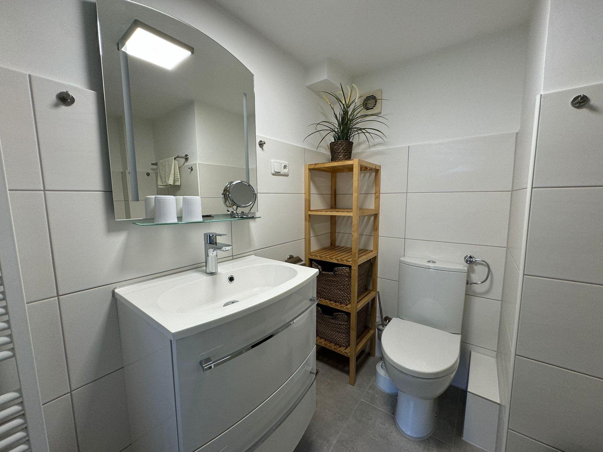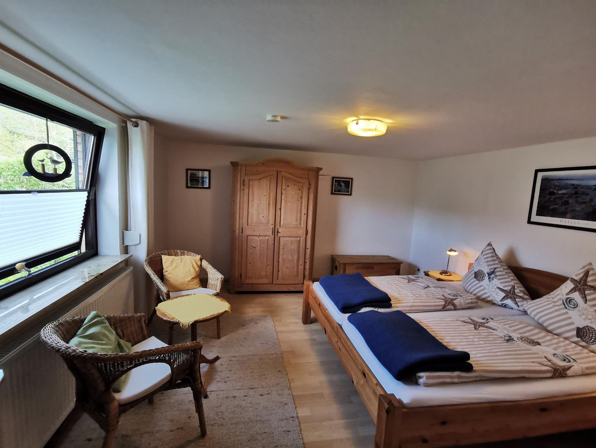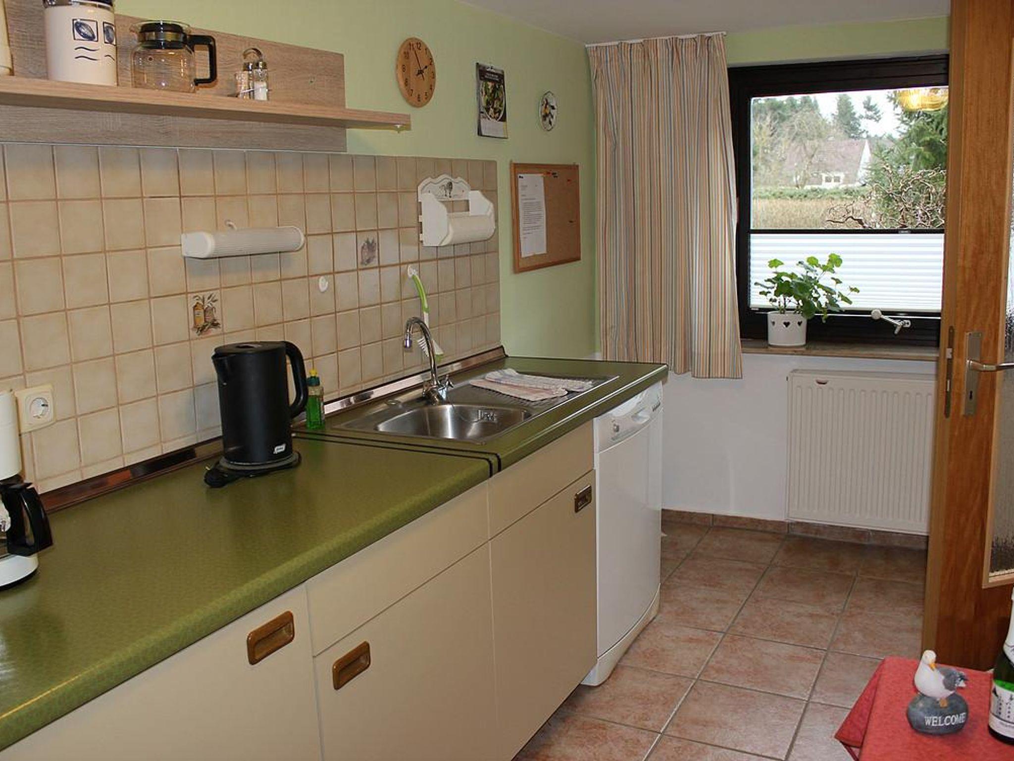 Die 3-Sterne-Wohnung im Haus des Vermieters mit 1500 qm Grundstück und separatem Eingang verfügt über ein großes Wohnzimmer mit komfortabler Schlafcouch, eine große Essecke im Wohnzimmer mit Fernseher, Stereoanlage und DVD-Player. Eine Küche mit Sitzecke, Mikrowelle, Herd und Geschirrspüler. Ein Schlafzimmer mit Doppelbett und Schrank. Eine Terrasse mit Gartenstühlen und Grill sind vorhanden und bieten perkete Voraussetzungen, um die Ruhe und die frische Luft zu geniessen. Die Ferienwohnung ist ebenerdig (Parterre) liegt zentral, aber dennoch ruhig am Ende einer Sackgasse.