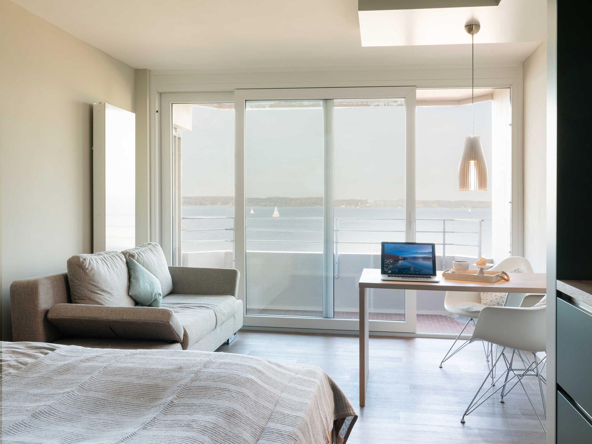Appartement FördeMeer in Glücksburg bietet Meerblick und modernes Design direkt an der Strandpromenade.
