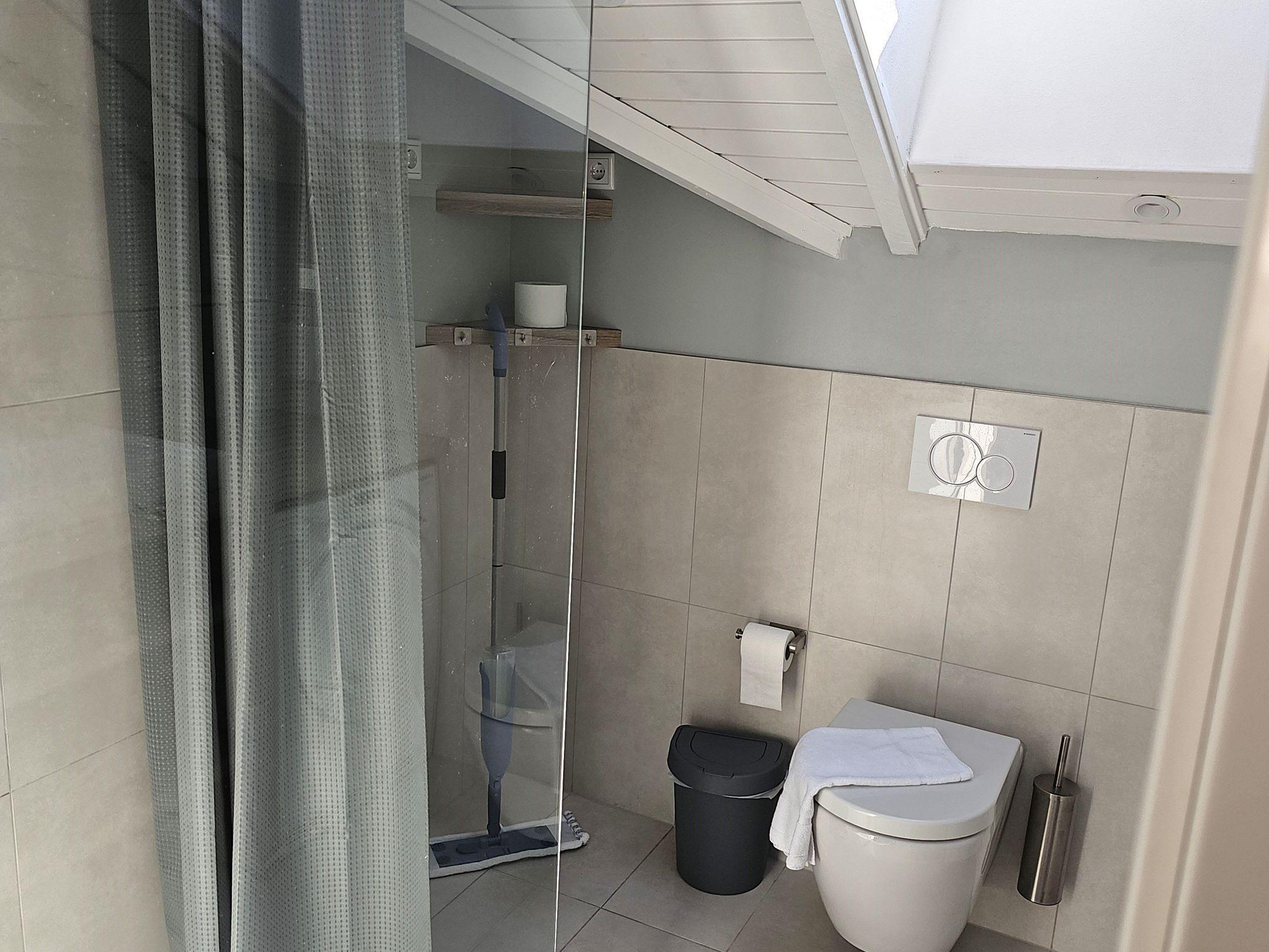 Das moderne Badezimmer bietet nicht nur viel Ablagefläche, sondern ist außerdem ausgestattet mit einer: Walk in Dusche, Waschmaschine und Trockner sowie heller und freundlicher Ausstattung ? ideal für längere Aufenthalte.