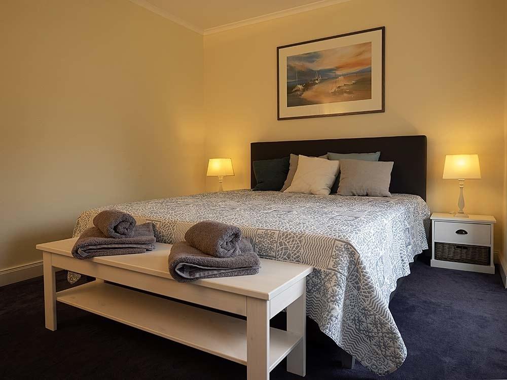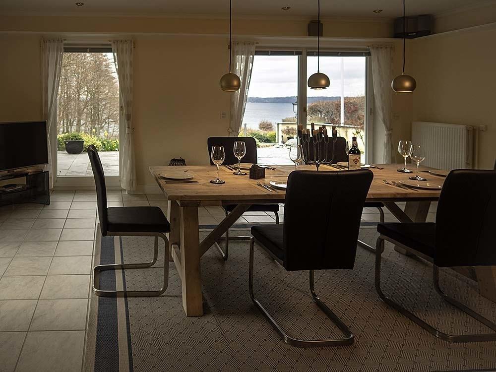 Die Villa besteht aus einer Hauptwohnung, die über insgesamt drei geschmackvoll eingerichtete Schlafzimmer verfügt. Alle Schlafzimmer sind mit komfortablen Doppelbetten ausgestattet und bieten Ihnen einen ruhigen und erholsamen Schlaf. Von den Fenstern aus haben Sie einen herrlichen Blick auf das weite Meer, sodass Sie schon beim Aufwachen die Schönheit der Flensburger Förde genießen können. Die Räume sind lichtdurchflutet und durch die großen Fensterfronten wirkt die Villa besonders hell und einladend.
