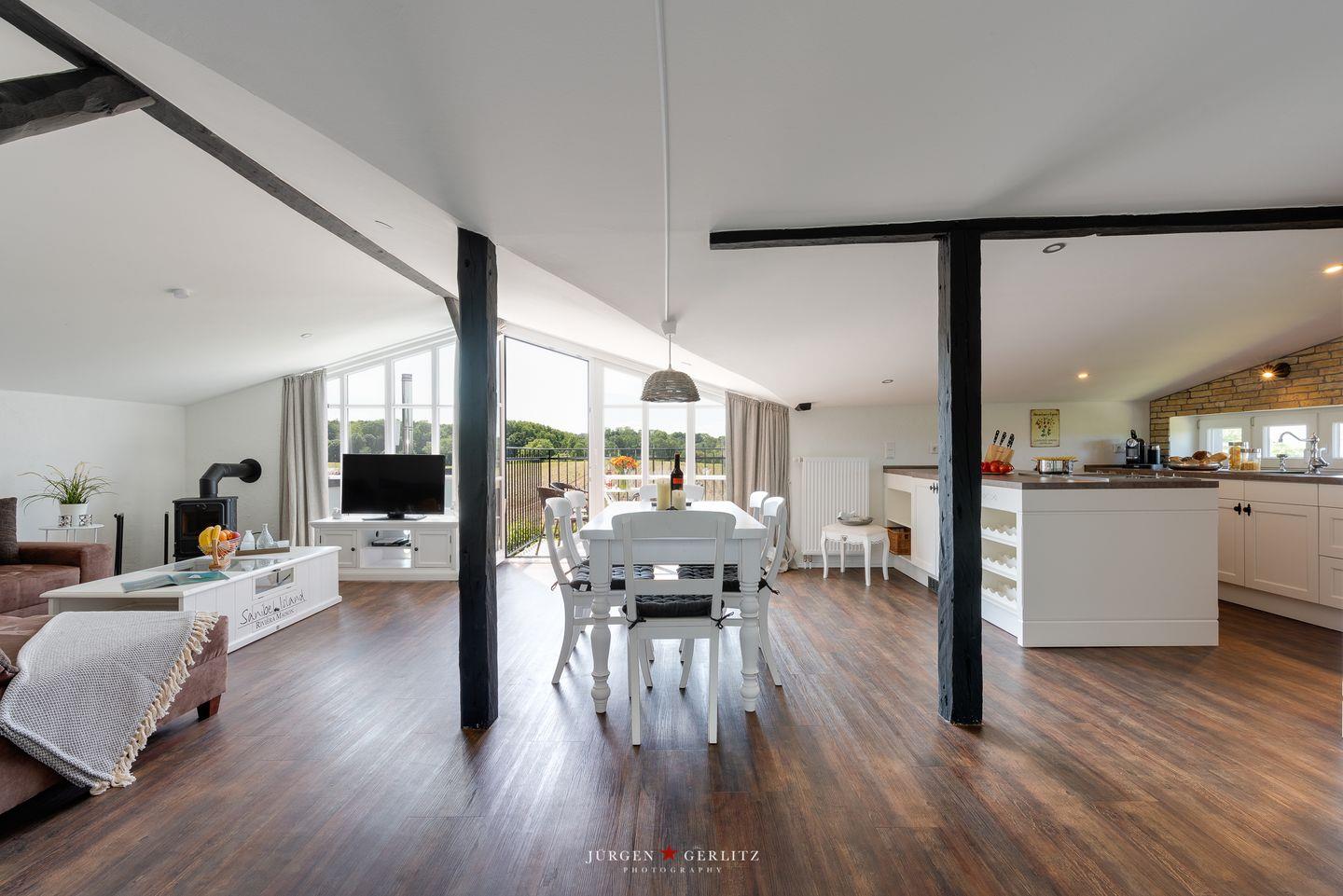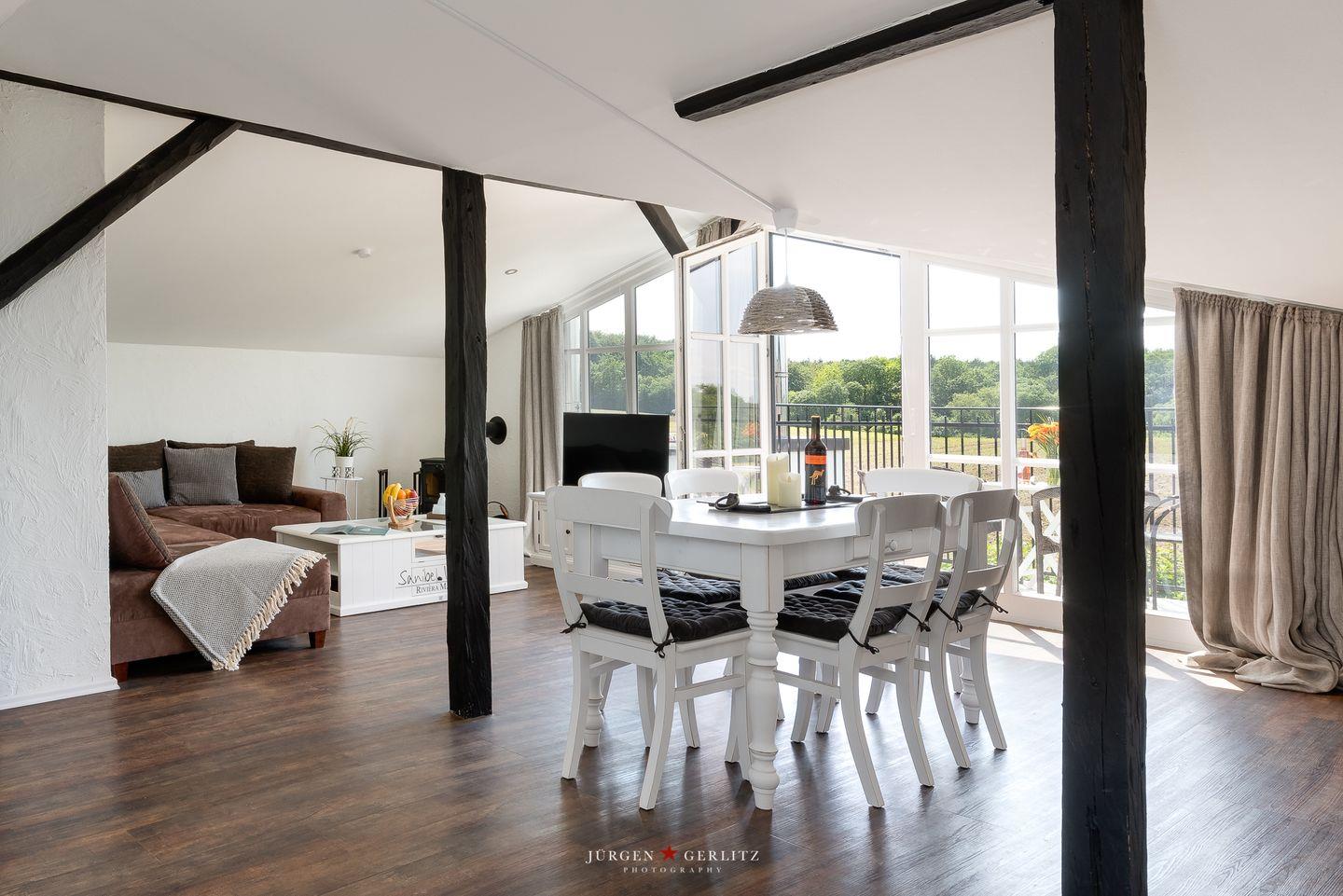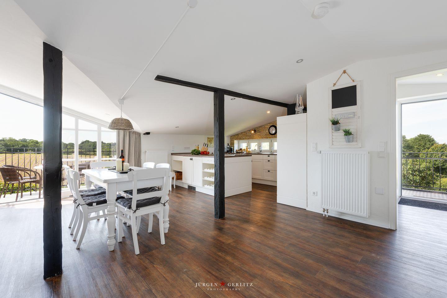 Exklusive Design-Ferienwohnung in Glücksburg mit Balkon, Kamin, moderner Ausstattung und fantastischem Seeblick.