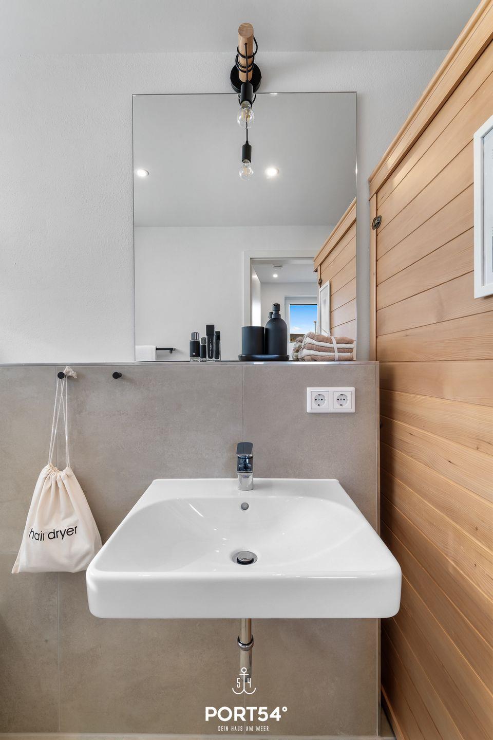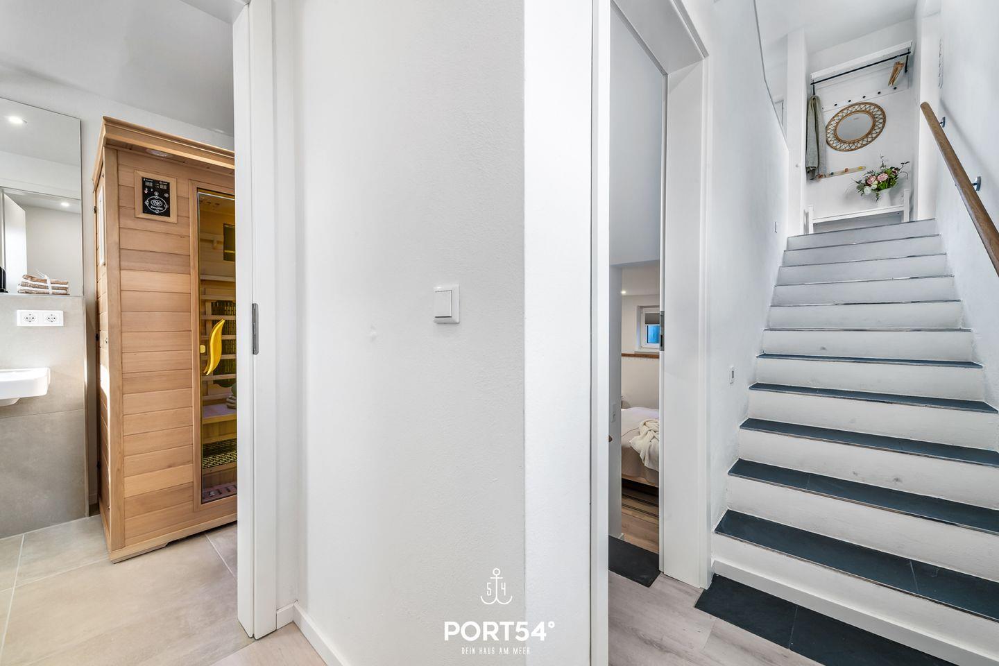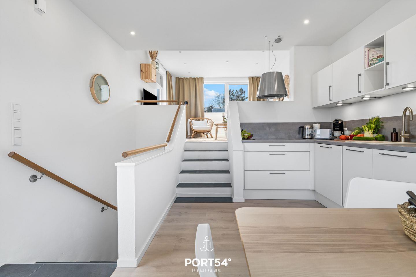 Mit Meerblick und Infrarot-Sauna lädt die Doppelhaushälfte "Meerliebe" zu jeder Jahreszeit zu einem Urlaub direkt an der Ostsee ein. Bis zu vier Personen finden auf rund 70m² Platz. Das Schlafzimmer im Souterrain mit TV bietet in einem Doppelbett (180x200cm) ruhige Nächte für 2 Personen. Ebenfalls im Souterrain befindet sich das Badezimmer, welches Sie mit einer bodengleichen Dusche, sowie eine Infrarot-Sauna erwartet. Nach langen Spaziergängen kann hier herrlich entspannt werden! Zwei weitere Schlafmöglichkeiten bietet die bequeme Couch (140x200cm) im offenen Wohn- und Essbereich mit angrenzender Küche. In der vollausgestatteten Küche können Sie nach Lust & Laune kochen und danach die Abende auf dem gemütlichen Sofa oder auf der Dachterrasse ausklingen lassen. Die Dachterrasse mit Gartenmöbeln bietet einen traumhaften Blick auf die Ostsee. Hier lassen sich sonnige Frühstücke oder laue Sommerabende am Elektro-Grill verbringen. Direkt vor dem Haus befindet sich eine eigene Parkfläche mit Zugang zur E-Ladesäule.
