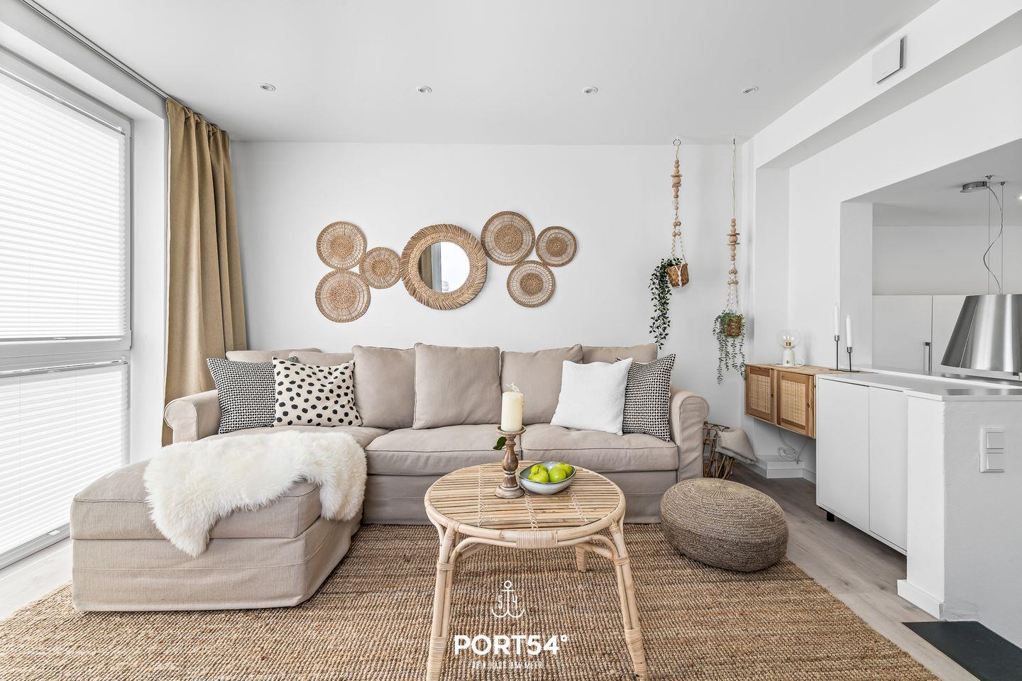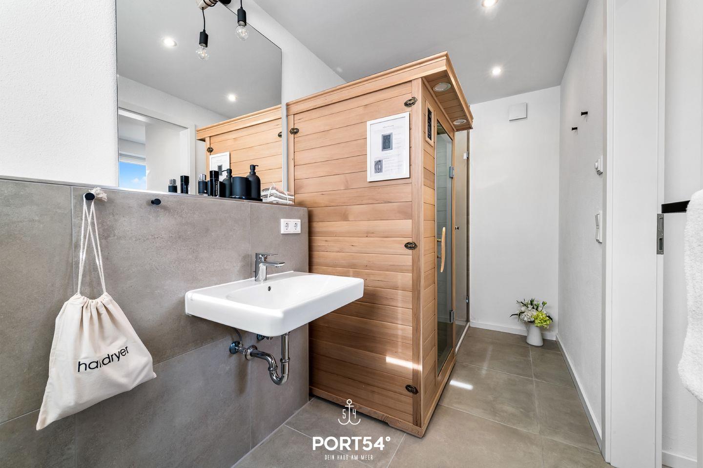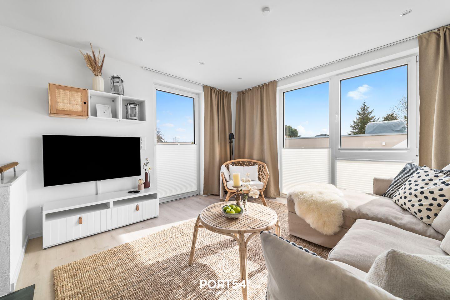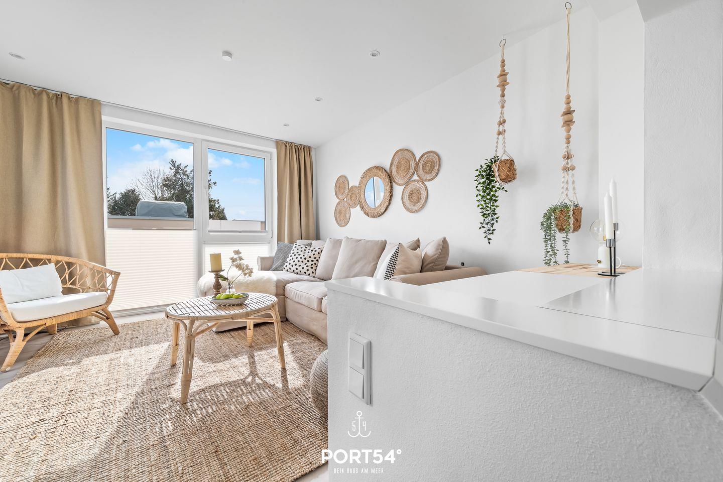 Diese Doppelhaushälfte bietet Ihnen auf knapp 70m² Platz für bis zu 4 Personen. Der großzügige Wohn-/Essbereich mit angrenzender voll ausgestatteter Küche wirkt, dank der bodentiefen Fenster, zu jeder Tageszeit einladend. Das Schlafzimmer bietet Ihnen ein Doppelbett, sowie einen TV. Weitere Schlafmöglichkeiten bietet Ihnen das Schlafsofa. Das Wellnessbad verfügt über eine ebenerdige Dusche & eine Infrarot-Sauna. Das Highlight ist die Dachterrasse mit traumhaftem Blick auf die Ostsee.