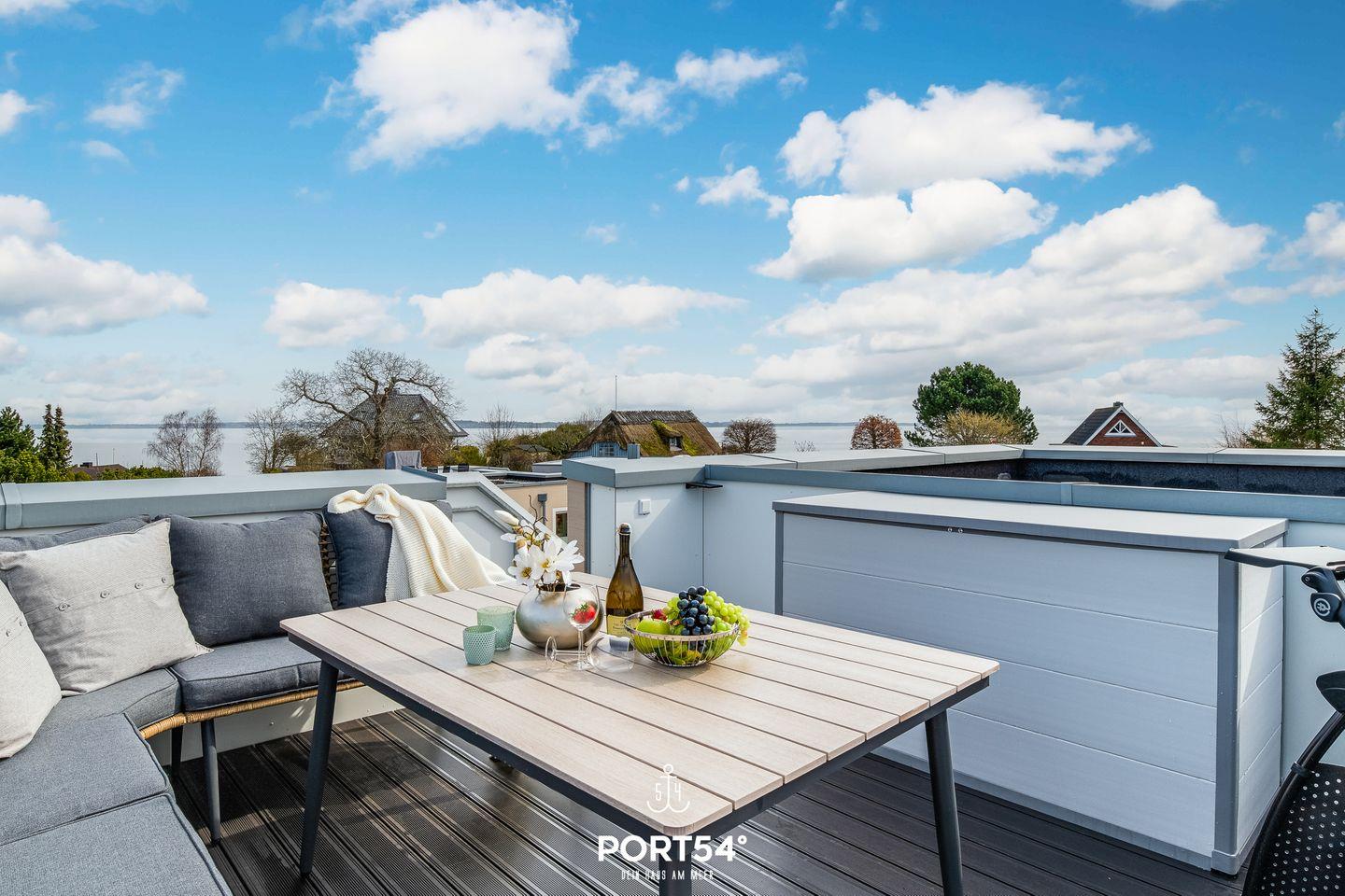 Gemütliche Doppelhaushälfte mit Meerblick, Dachterrasse und Infrarot-Sauna direkt an der Ostsee in Glücksburg.