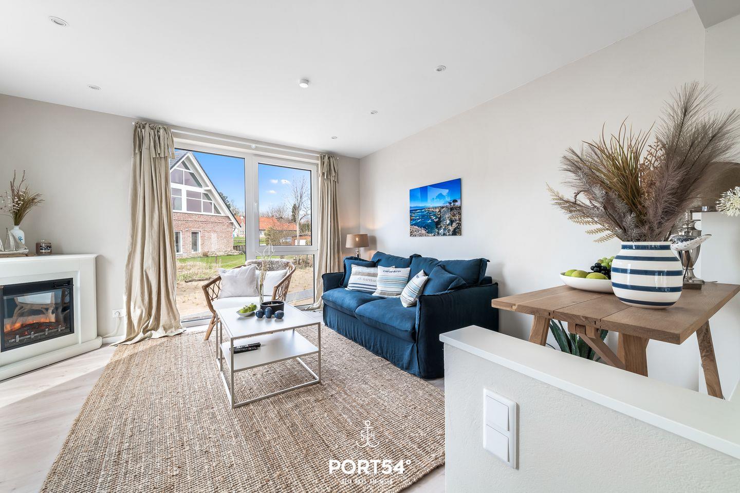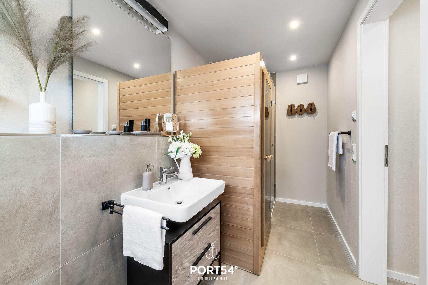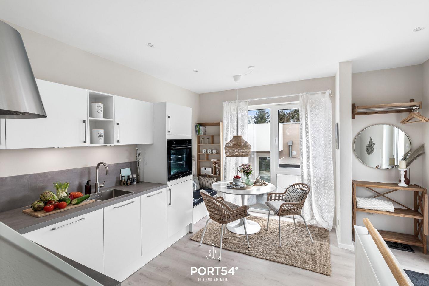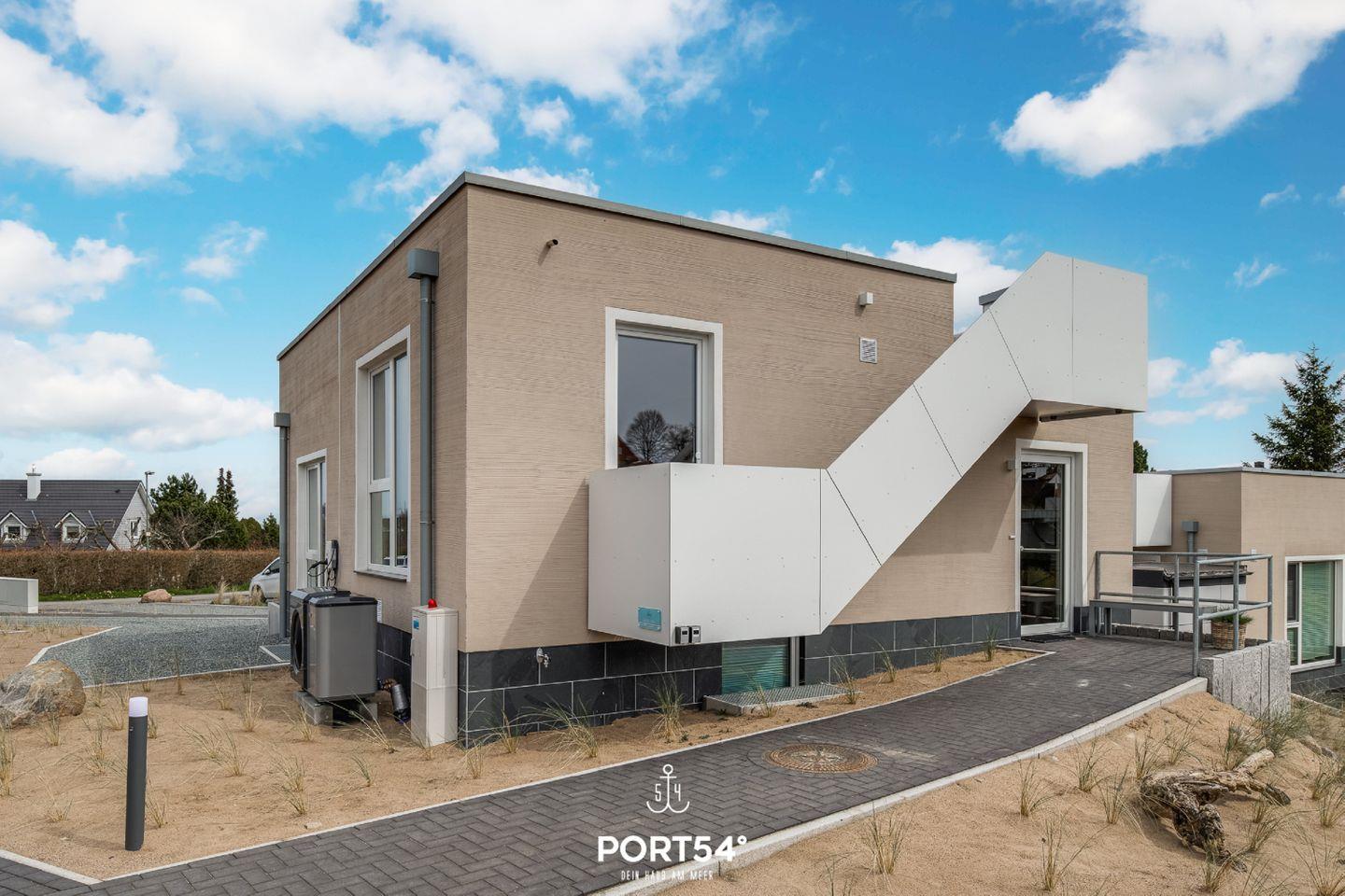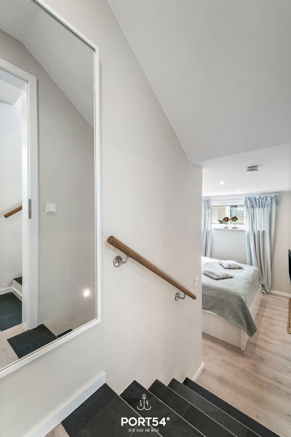 Modernes Doppelhaus mit Dachterrasse, Meerblick, Sauna und Grill in Glücksburg, ideal für erholsamen Ostseeurlaub.