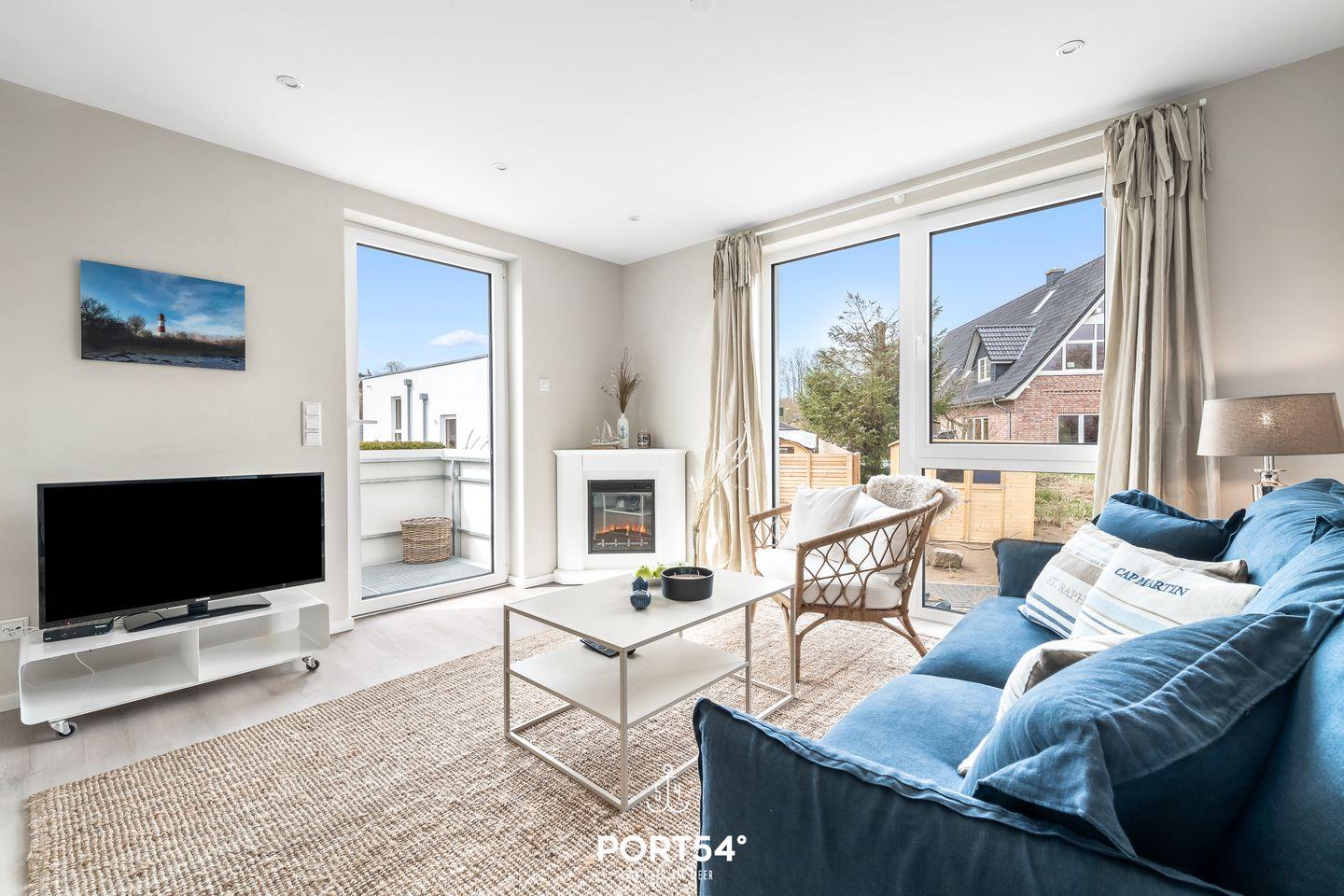 In der 2023 fertiggestellten Doppelhaushälfte "Baltic View" mit Dachterrasse und tollem Meerblick, Infrarot-Sauna, Fahrradschuppen und privatem Stellplatz finden bis zu 2 Erwachsene und 1 Kind gemütlich Platz. Rund 70m² teilen sich über Souterrain und Erdgeschoss in ein Schlafzimmer, ein Badezimmer und einen offenen Wohnbereich mit angrenzender Küche mit Essbereich auf. Die Fenster sind durch Plissees sichtgeschützt. Das Schlafzimmer im Souterrain mit TV bietet in einem Doppelbett (180×200cm) ruhige Nächte für 2 Personen. Ebenfalls im Souterrain befindet sich das Badezimmer, welches Sie mit einer bodengleichen Dusche, sowie eine Infrarot-Sauna erwartet. Eine weitere Schlafmöglichkeit (für ein Kind) bietet die bequeme Couch (140×200cm) im offenen Wohn- und Essbereich. Eines der Highlights ist die voll möblierte Dachterrasse mit einem traumhaften Blick auf die Ostsee. Hier lassen sich sonnige Frühstücke oder laue Sommerabende am Elektro-Grill verbringen. Direkt vor dem Haus befindet sich eine eigene Parkfläche.