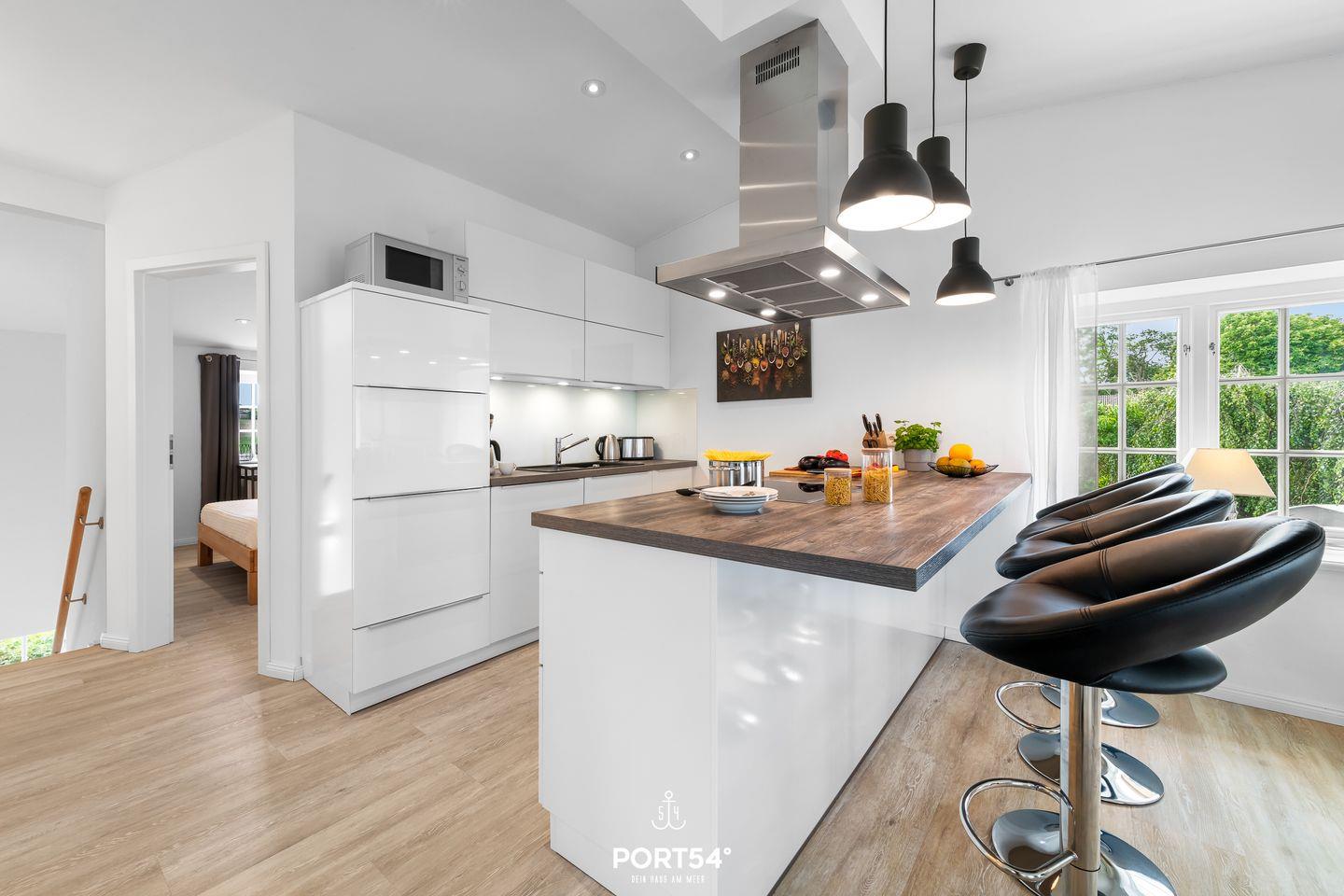 Die Unterkunft verfügt über zwei geschmackvoll eingerichtete Schlafzimmer, die Ihnen erholsame Nächte ermöglichen. Die zwei Schlafzimmer bieten ein kleines Doppelbett (160x200cm) und ein Doppelbett (180x200cm). Genießen Sie die Annehmlichkeiten von zwei Badezimmern, darunter eine bodengleiche Dusche und eine Badewanne, die perfekte Möglichkeiten zur Entspannung nach einem Tag voller Erlebnisse bieten. Die offene Küche, die nahtlos in das Wohnzimmer übergeht, ist mit modernen Geräten ausgestattet, darunter ein Herd, ein Backofen, eine Spülmaschine und eine Mikrowelle, damit Sie für Ihre Lieben köstliche Mahlzeiten zubereiten können. Das Gartenzimmer mit einem gemütlichen Sofa bieten eine zusätzliche Schlafmöglichkeit.