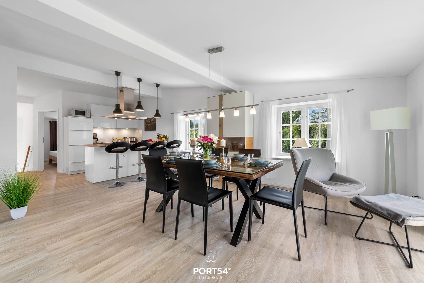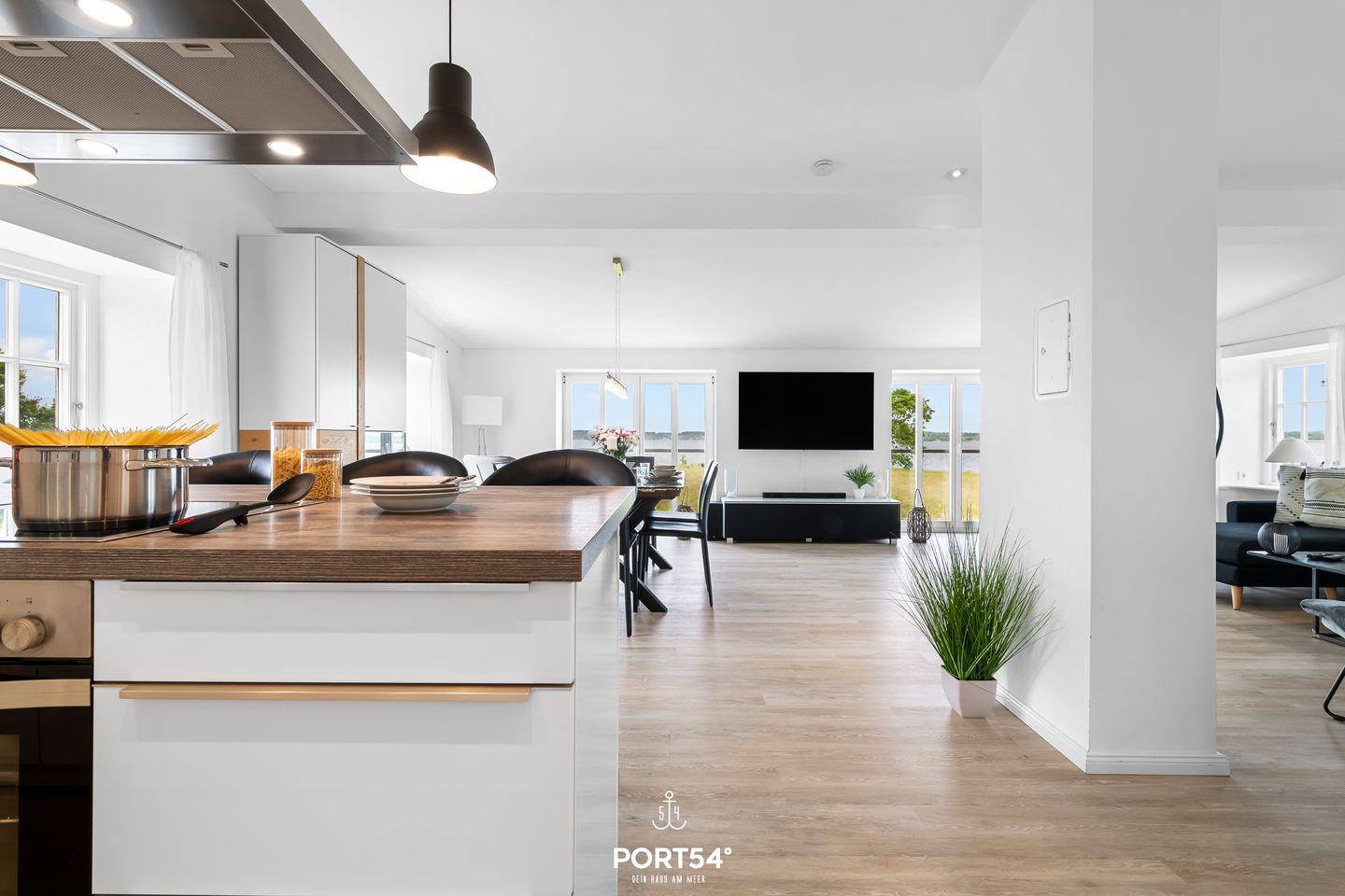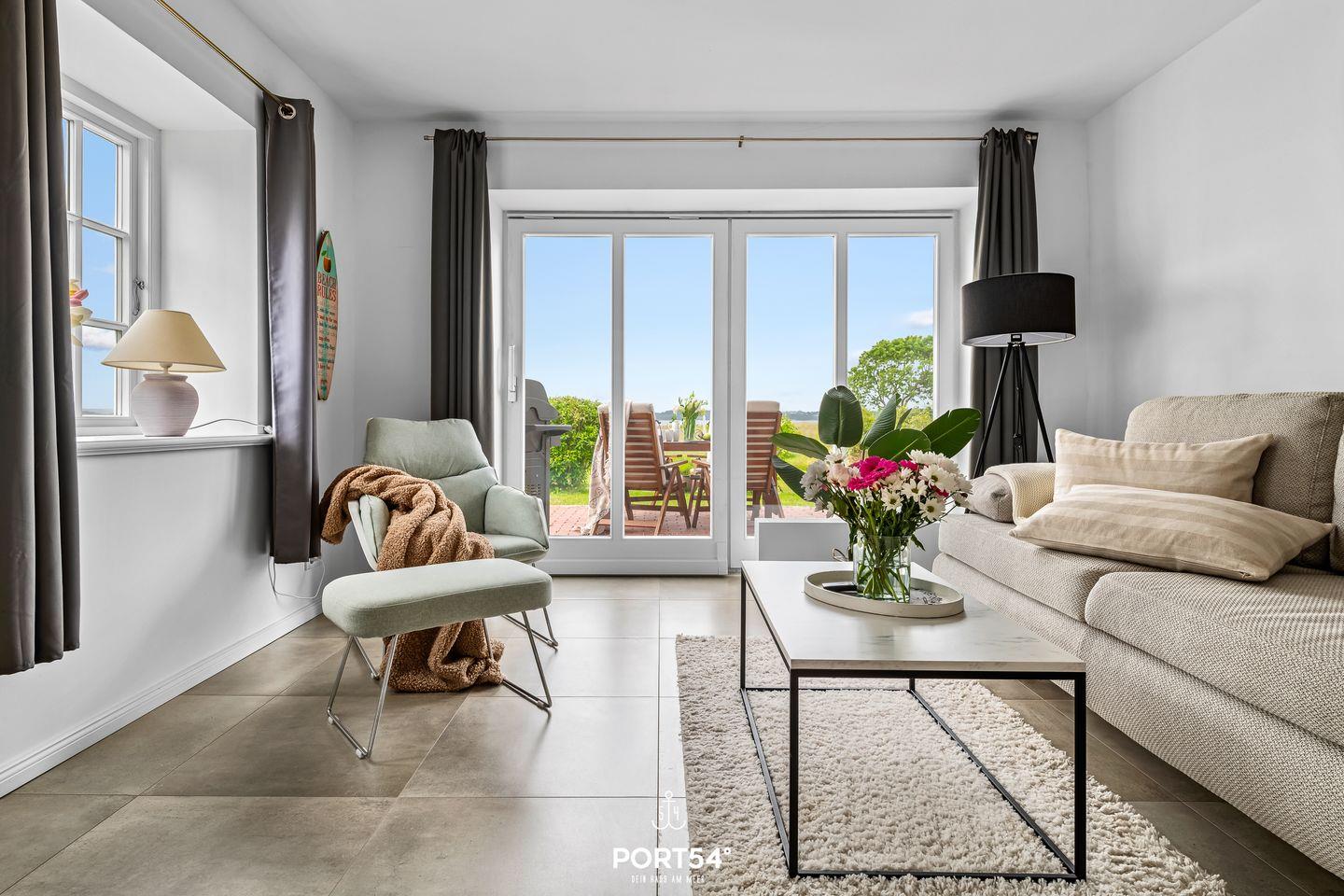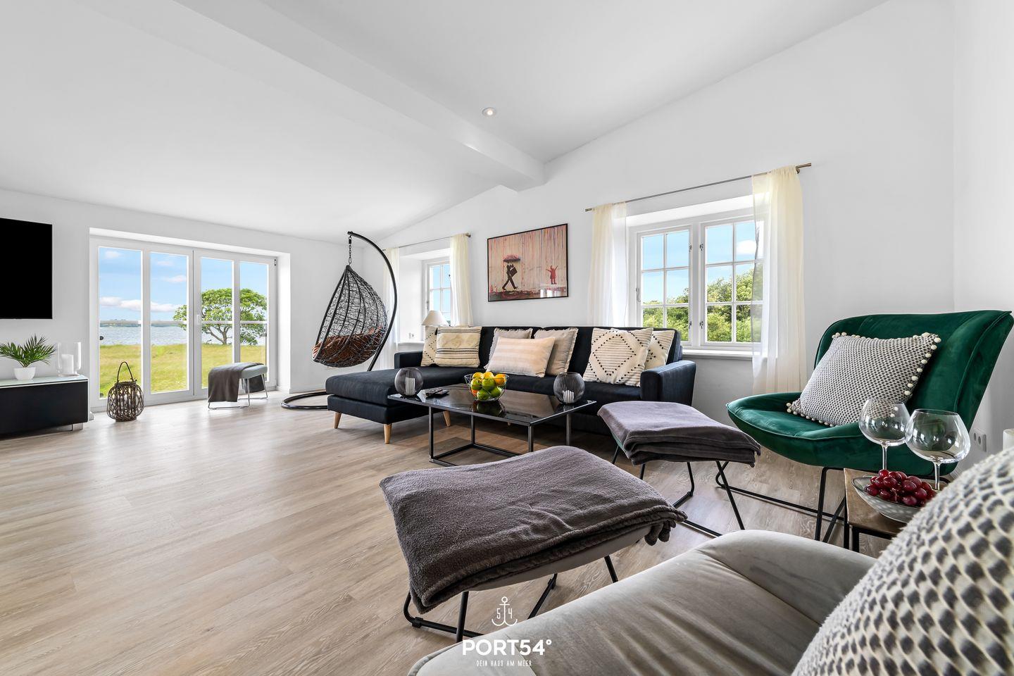 Modernes Ferienhaus Loft an der Ostsee Glücksburg mit Sauna, Meerblick und Naturstrandzugang.