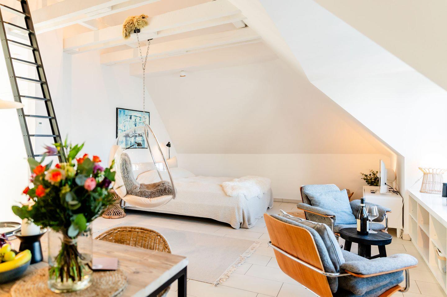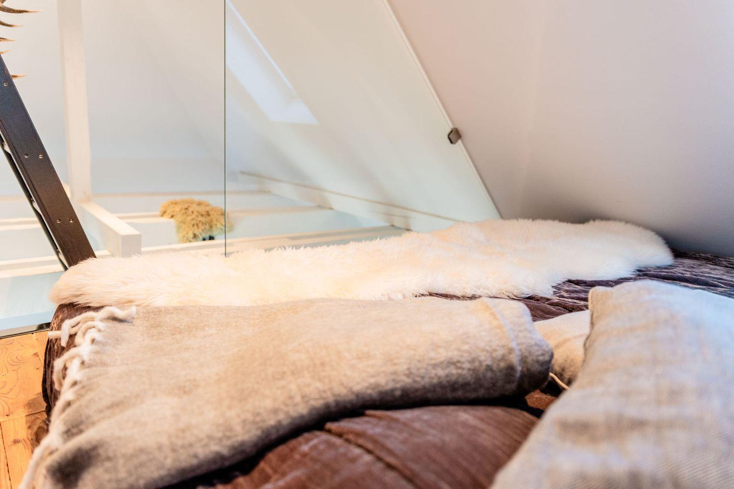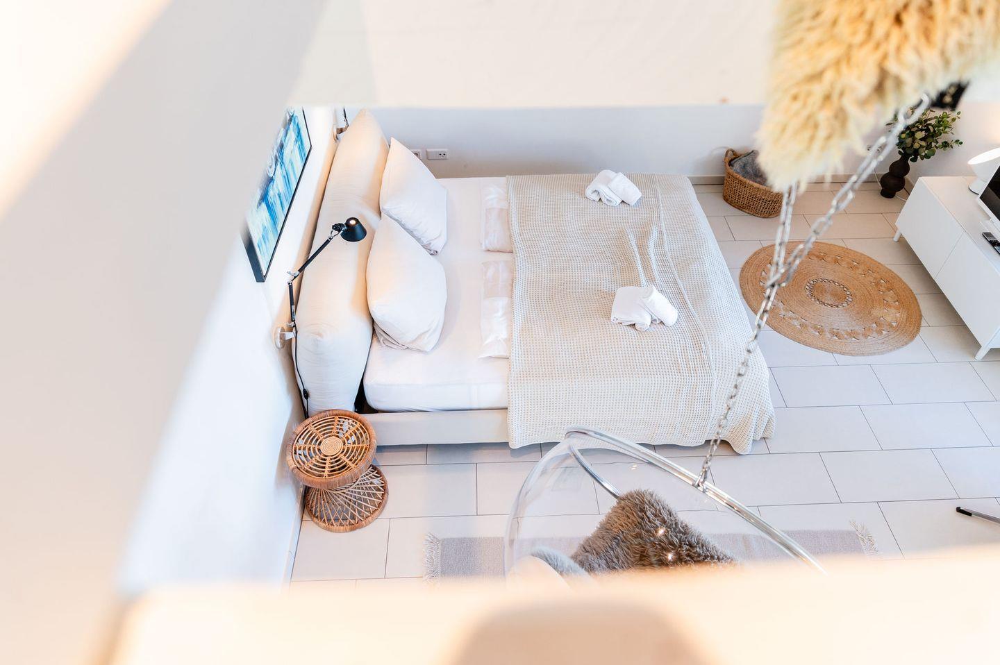 Die 1-Zimmer Ferienwohnung mit einer weiteren Ebene, mit dem offenen Hems hat Platz für bis zu zwei Personen.