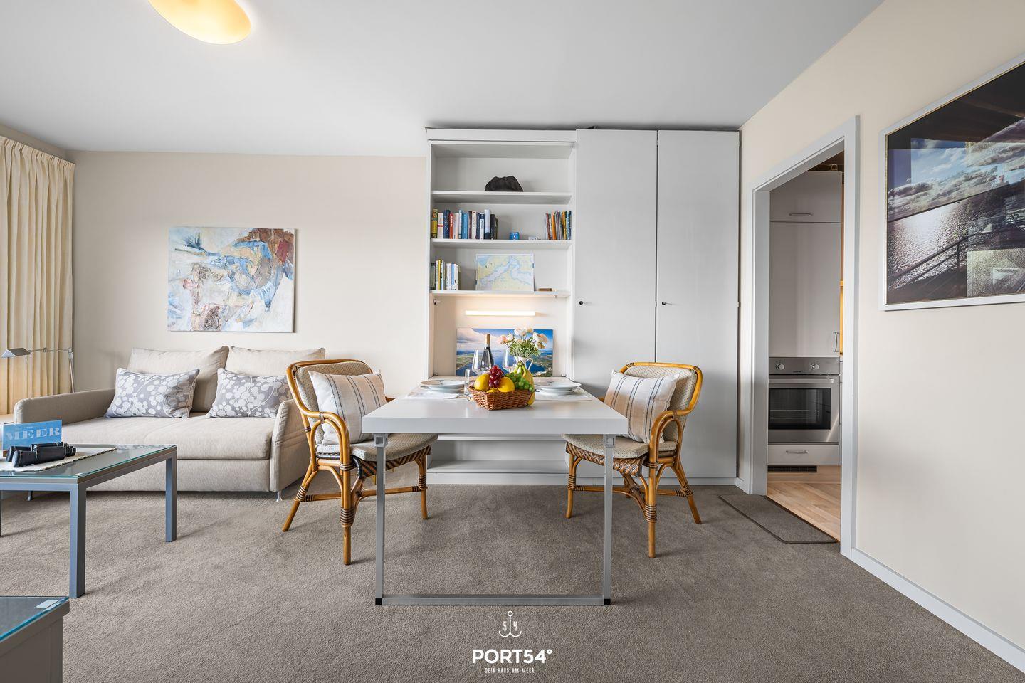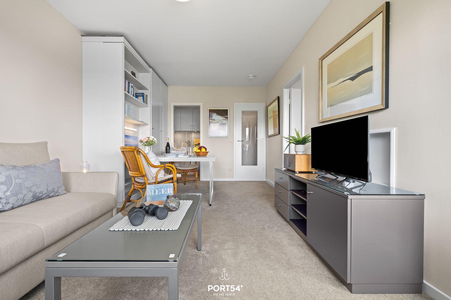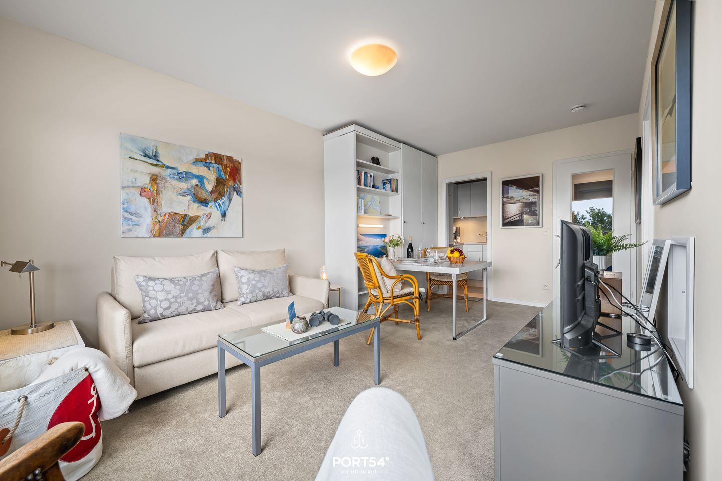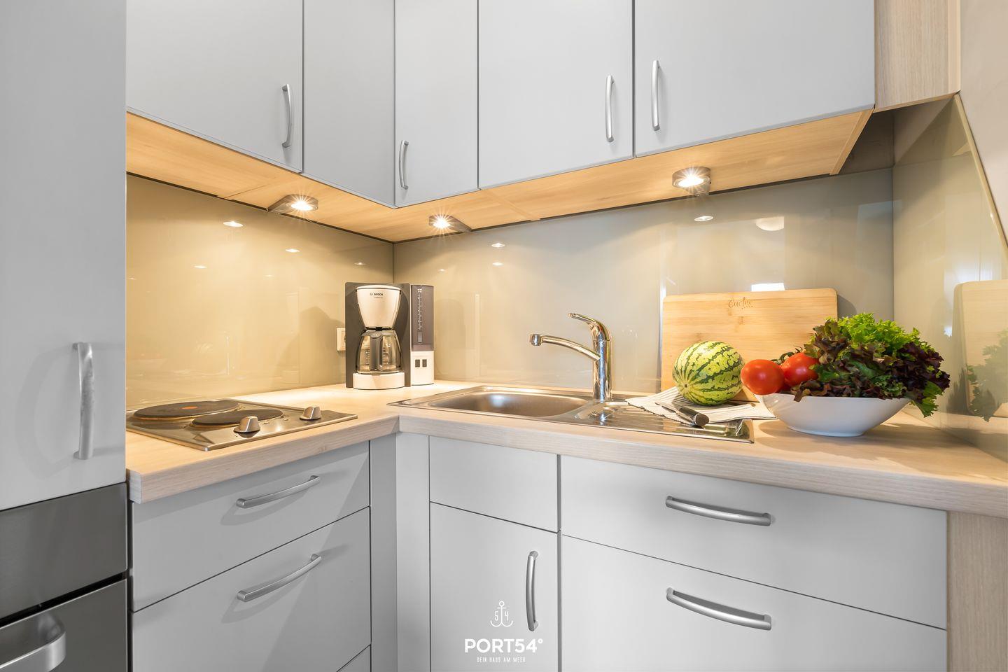 Die Ferienwohnung Lieblingsplatz in Glücksburg bietet auf 37 m² ein durchdachtes und gemütliches Ambiente für einen erholsamen Aufenthalt an der Flensburger Förde. Im 5. Stock eines gepflegten Gebäudes gelegen und bequem mit dem Aufzug erreichbar, genießen Sie hier einen außergewöhnlich guten Meerblick von Ihrem eigenen Balkon aus. Die Entfernung zum Meer beträgt nur 50 Meter, während der feine Sandstrand bereits nach 250 Metern erreichbar ist. Die Wohnung verfügt über zwei Zimmer, darunter ein separates Schlafzimmer sowie ein helles Wohnzimmer mit bequemer Sitzecke. Das Schlafsofa bietet sich mit einer Liegefläche von 140x200cm ideal als Ausweismöglichkeit an. Die moderne Küche ist voll ausgestattet mit einem 2 Platten Herd, Backofen, Kühlschrank mit Gefrierfach, Kaffeemaschine, Wasserkocher und Toaster. Am Esstisch lässt sich das Frühstück mit Blick auf das Wasser besonders genießen. Selbstverständlich stehen Ihnen WLAN und ein digitaler Fernseher im Wohnbereich zur Verfügung. Das Badezimmer ist mit einer bodengleichen Dusche, Föhn, Waschbecken und WC modern gestaltet. Ein gemeinschaftlich nutzbarer Waschraum mit Waschmaschine und Trockner sowie ein Wäscheständer ergänzen die Ausstattung. Das Stadtzentrum von Glücksburg ist rund 5 Kilometer entfernt, während sich Einkaufsmöglichkeiten in etwa 3,9 Kilometern Entfernung befinden. Ein Restaurant erreichen Sie bereits nach 150 Metern und ein Supermarkt, Banken, Ärzte sowie Anschluss an den öffentlichen Nahverkehr sind gut erreichbar. Ein Parkplatz befindet sich direkt vor der Unterkunft. Für einen romantischen Rückzugsort bietet Ihnen die Ferienwohnung Lieblingsplatz eine hochwertige, liebevoll ausgestattete Basis in direkter Strandnähe und mit hervorragender Aussicht auf die Ostsee.
