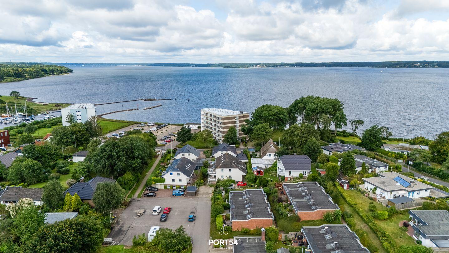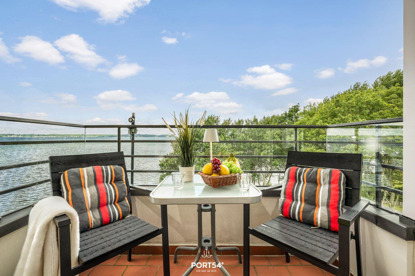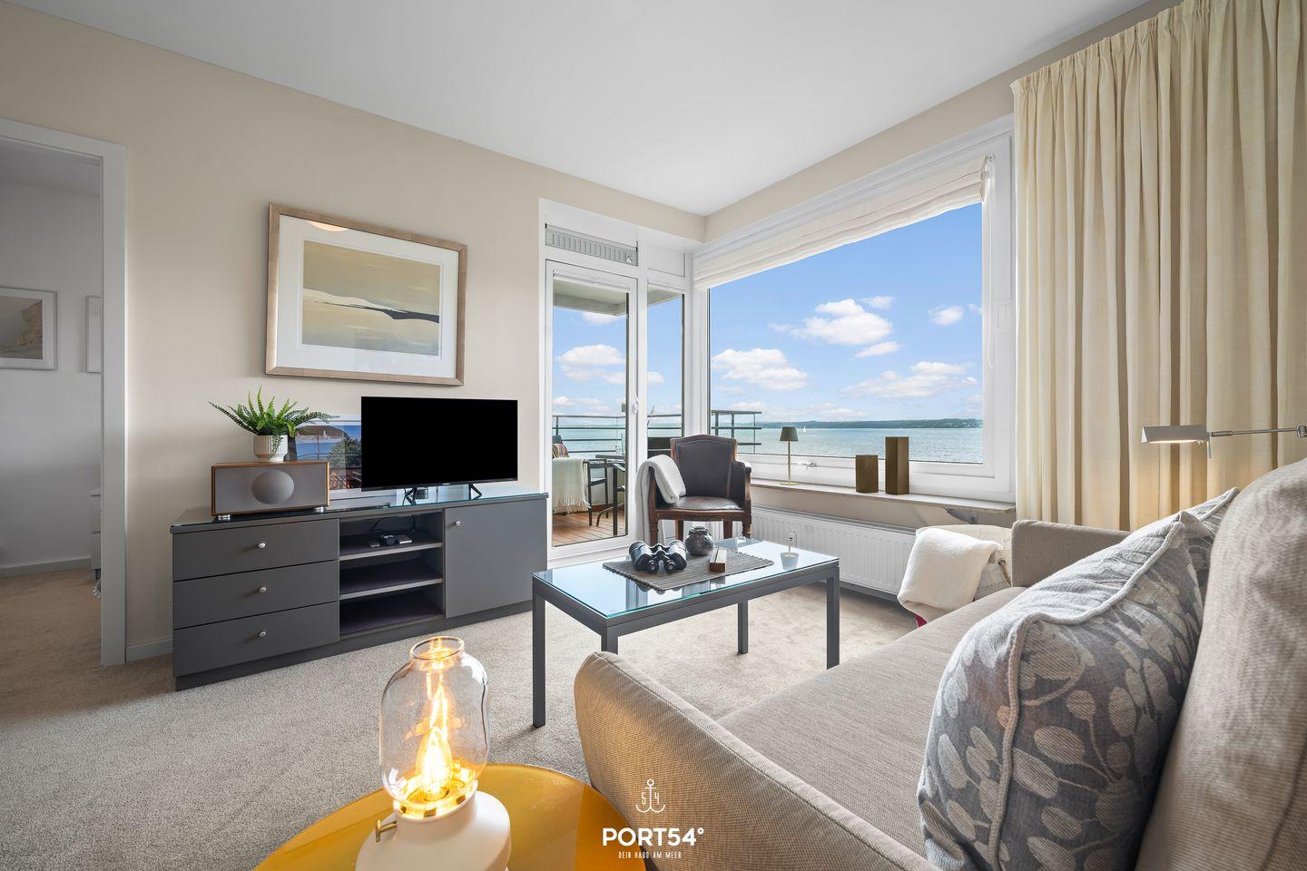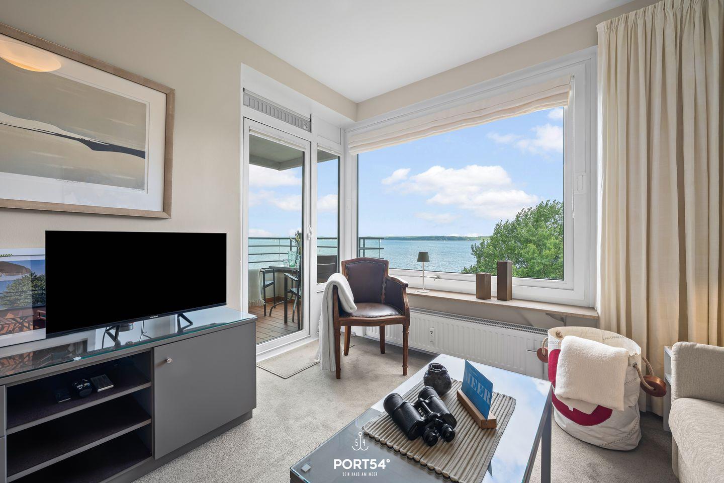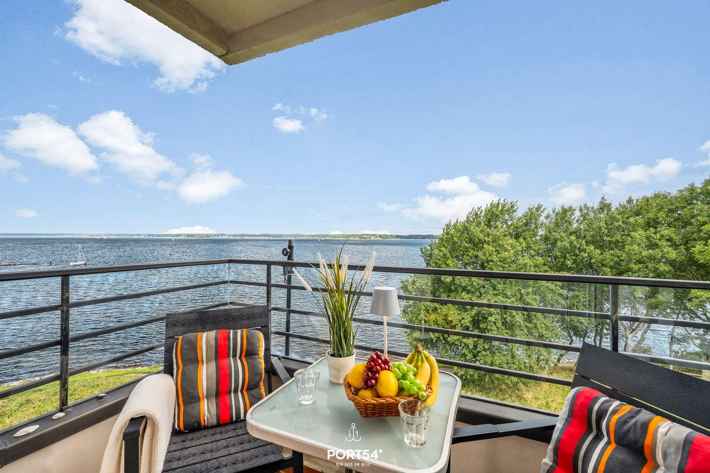 Die Ferienwohnung Lieblingsplatz in Glücksburg bietet traumhaften Meerblick, Balkon und moderne Ausstattung für einen erholsamen Aufenthalt.