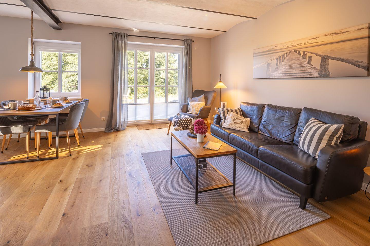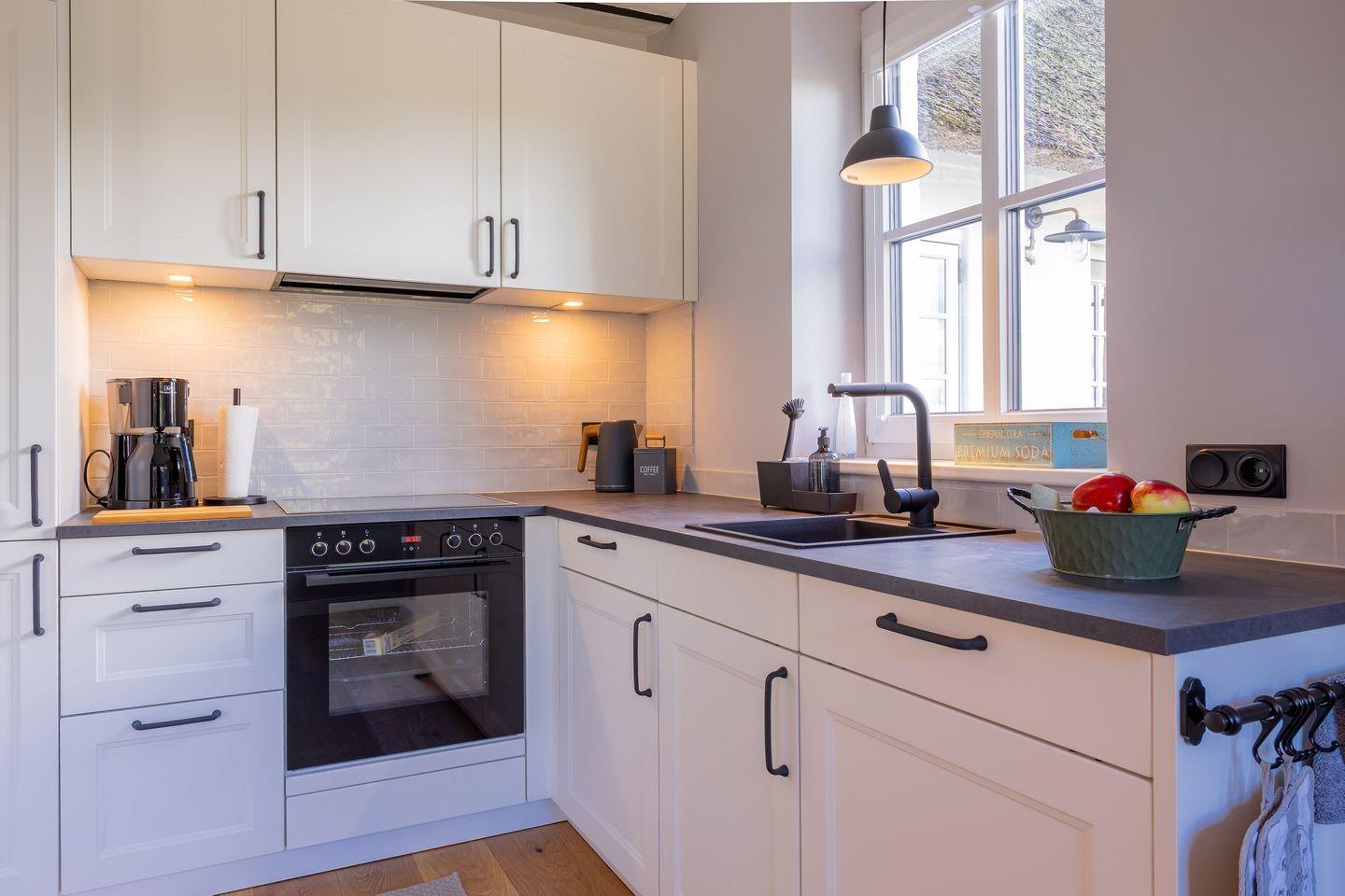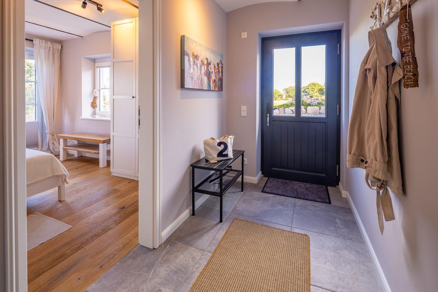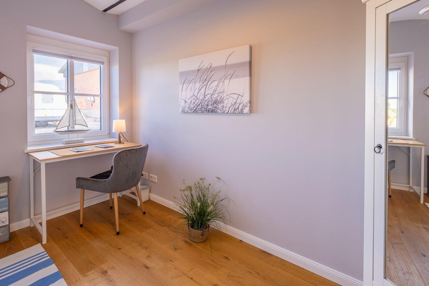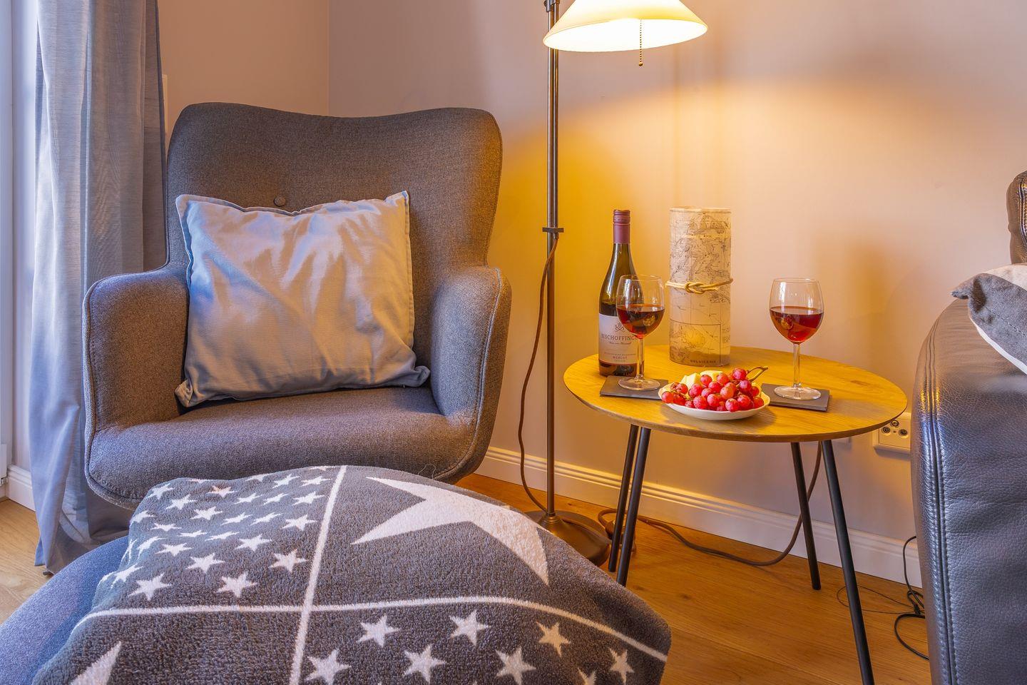 Nur einen Steinwurf von der Küste entfernt und am Naturschutzgebiet gelegen, empfängt Sie das charmante Ferienhaus „Heimathafen Schausende“ in Glücksburg mit 73 m² stilvoller Einrichtung – ideal für bis zu vier Personen, die Ruhe, Natur und maritimes Flair suchen. Die modern ausgestattete Küche ist offen in den Wohn- und Essbereich integriert und lädt zu gemeinsamen Kochabenden ein. Sie verfügt unter anderem über eine Mikrowelle, Geschirrspüler, Kaffeemaschine, Toaster, einen Stabmixer und ein Handrührgerät sowie reichlich Geschirr und Kochutensilien. Ein Esstisch, ein komfortables Sofa, ein Smart-TV und zwei Sessel runden den Wohnbereich gemütlich ab. Zwei separate Schlafzimmer bieten mit gemütlichen Betten und Verdunkelungsmöglichkeiten eine behagliche Atmosphäre zum Entspannen und Ausschlafen. In einem der Schlafzimmer befindet sich ein Doppelbett (180x200cm) und ein Kleiderschrank, während das andere Schlafzimmer über ein Ausziehbett (80-160x200cm) und ebenfalls einen Kleiderschrank sowie einen Schreibtisch verfügt. Auch an die kleinsten Gäste wurde gedacht: Ein Babybett und ein Hochstuhl stehen bereit. Kinder und Babys sind herzlich willkommen. Das moderne Bad überzeugt mit einer ebenerdigen Dusche, Kosmetikspiegel und einem Haartrockner. Für längere Aufenthalte stehen Ihnen außerdem eine Waschmaschine, ein Wäscheständer sowie Bügeleisen und -brett zur Verfügung. Die Terrasse lädt mit hochwertigen Gartenmöbeln, Sonnenliegen, Sonnenschirm und einem Gasgrill zu entspannten Stunden ein. Ein eigener Strandkorb verspricht echtes Küstenfeeling. Der Ausblick ins Grüne und auf den nahegelegenen Segelhafen rundet das Angebot ab, das Meer können Sie hier ebenfalls eingeschränkt erblicken. Zwei kostenfreie Privatparkplätze direkt am Haus sorgen für zusätzlichen Komfort. Ihre mitgebrachten oder vor Ort ausgeliehen Fahrräder und E-Bikes können Sie im abschließbaren Fahrradschuppen sicher unterstellen. Ob Segeln, Schwimmen, Angeln, Radfahren oder Wandern – die Umgebung von Glücksburg bietet ein breites Freizeitangebot für Aktivurlauber und Naturliebhaber direkt am Naturschutzgebiet und Ostseeküsten-Radweg. Außerdem befindet sich in der Nähe eine Badebrücke am Leuchtturm. Genießen Sie eine maritime Auszeit mit der besonderen Atmosphäre der Flensburger Förde. Buchen Sie jetzt Ihren Aufenthalt im Heimathafen Schausende – für erholsame Tage voller Komfort, Natur und norddeutschem Charme.