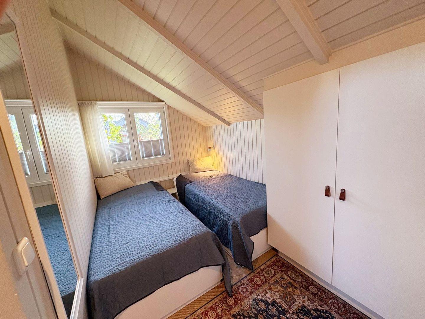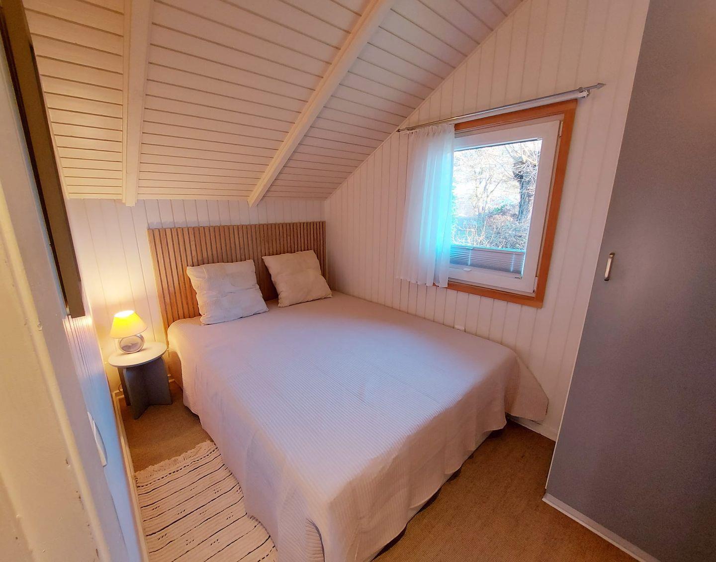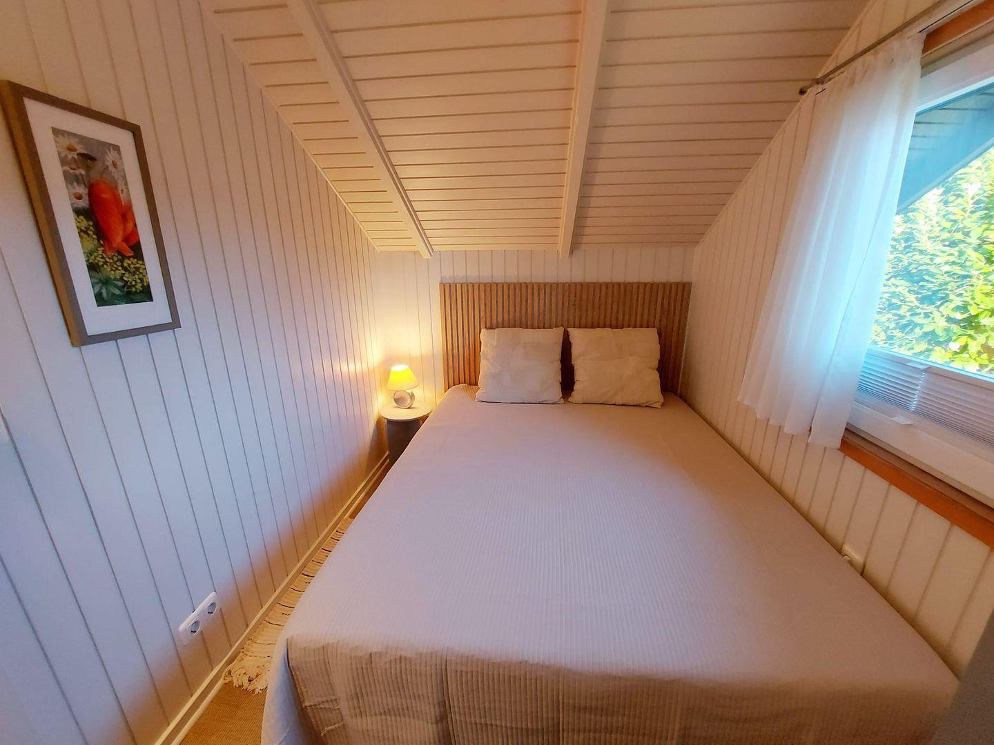 Das Ferienhaus verfügt über ein Schlafzimmer mit einem komfortablen Doppelbett (160 × 200 cm) sowie ein weiteres Schlafzimmer mit zwei Einzelbetten (je 90 × 200 cm), ideal für Kinder oder Mitreisende.