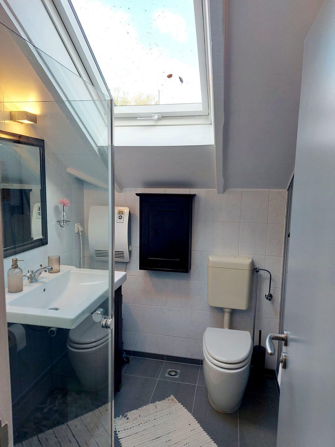 Das modernisierte Bad ist mit einer Duschkabine und Tageslichtfenster funktional ausgestattet.