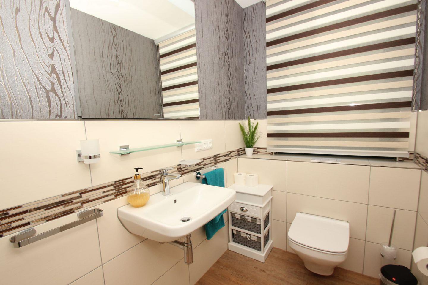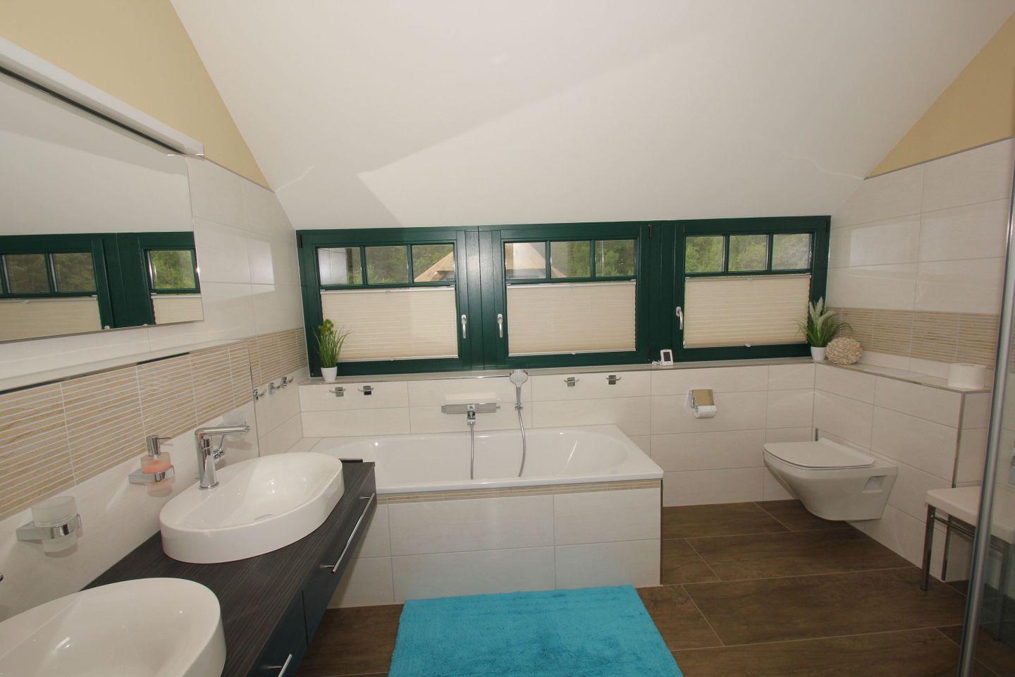 BAD // 1 Tageslicht Bad, mit Dusche, WC und Föhn im Erdgeschoss, 1 Vollbad mit Badewanne, bodengleicher Dusche. Doppelwaschbecken im Obergeschoss ++
