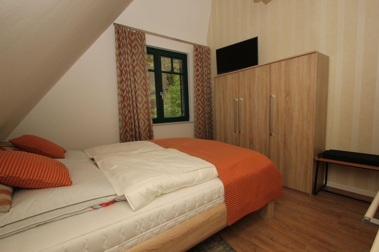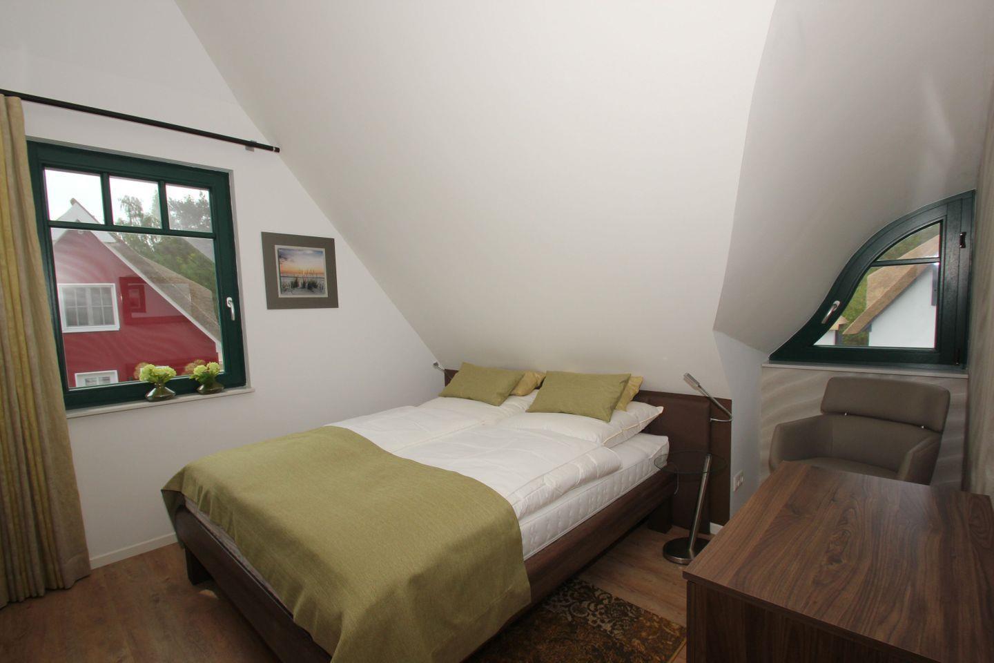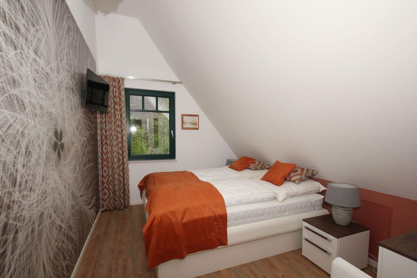 Vier separate Schlafzimmer, davon drei mit einem großzügigen Doppelbett, das vierte mit zwei Einzelbetten. Ein modernes Duschbad mit Badewanne, offener, verglaster Dusche und ein Gäste-WC im Erdgeschoss machen das Ferienhaus komplett.