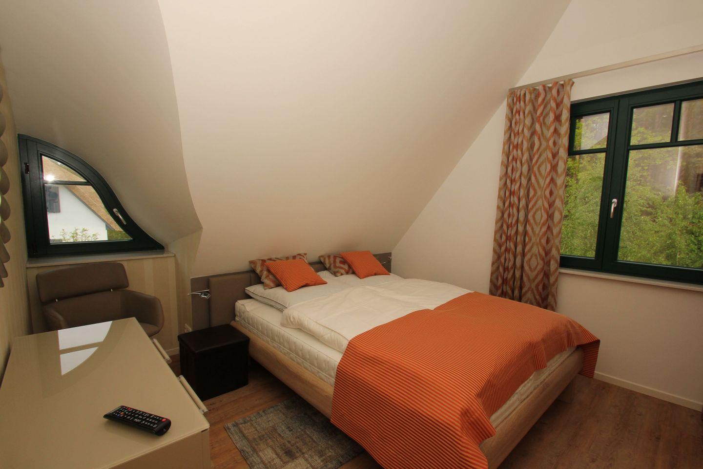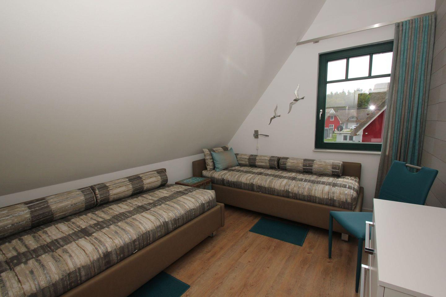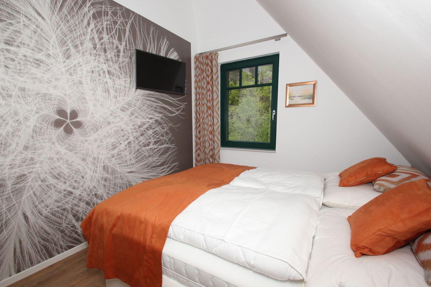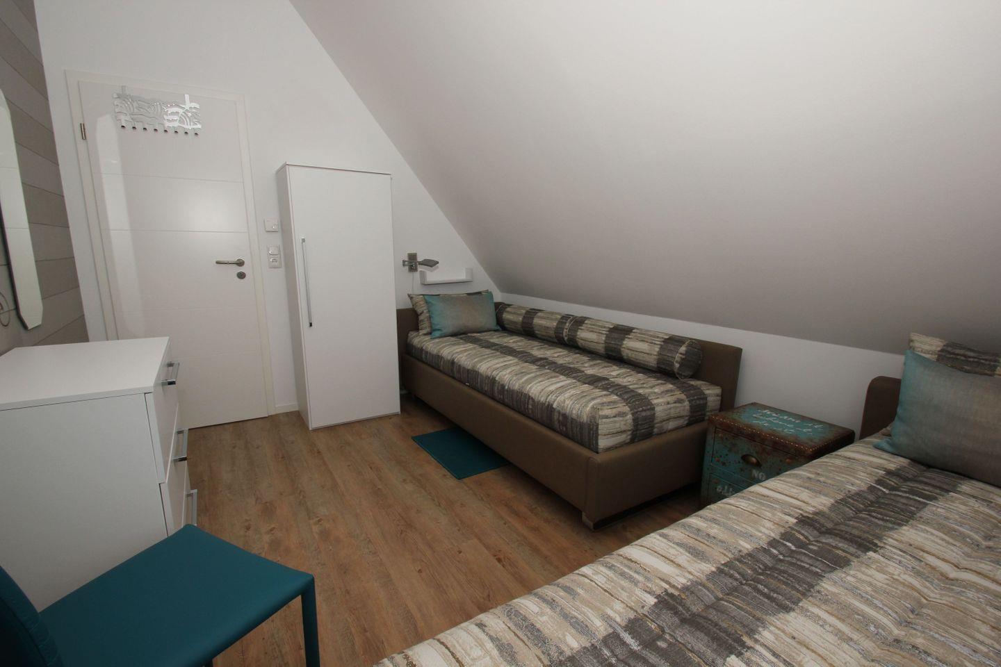 Vier separate Schlafzimmer, davon drei mit einem großzügigen Doppelbett, das vierte mit zwei Einzelbetten. Ein modernes Duschbad mit Badewanne, offener, verglaster Dusche und ein Gäste-WC im Erdgeschoss machen das Ferienhaus komplett.