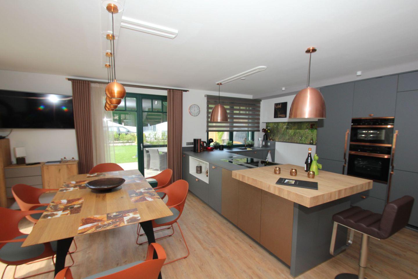 KÜCHE // offene Küche, 4-Platten Induktionsherd, Mikrowelle, Spülmaschine, Kühlschrank mit Gefrierfach, Backofen, Toaster, Wasserkocher, Kaffeemaschine, Aufschnittmaschine, reichlich Besteck, Geschirr und Küchenutensilien ++