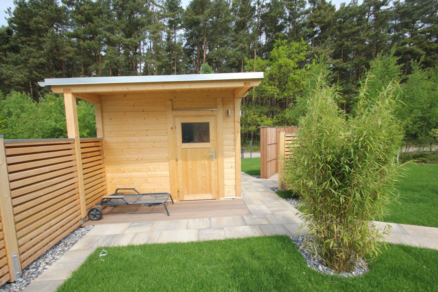 AUSSENBEREICH // 2 Parkplätze am Haus, separates Saunahaus im Garten mit Außendusche, Grill, Terrasse mit Garten, Fahrradabstellmöglichkeiten am Haus ++