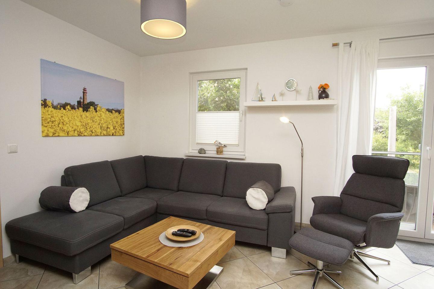 Moderne Ferienwohnung mit Terrasse, Sauna und Garten nahe Ostseestrand in Glowe auf Rügen.