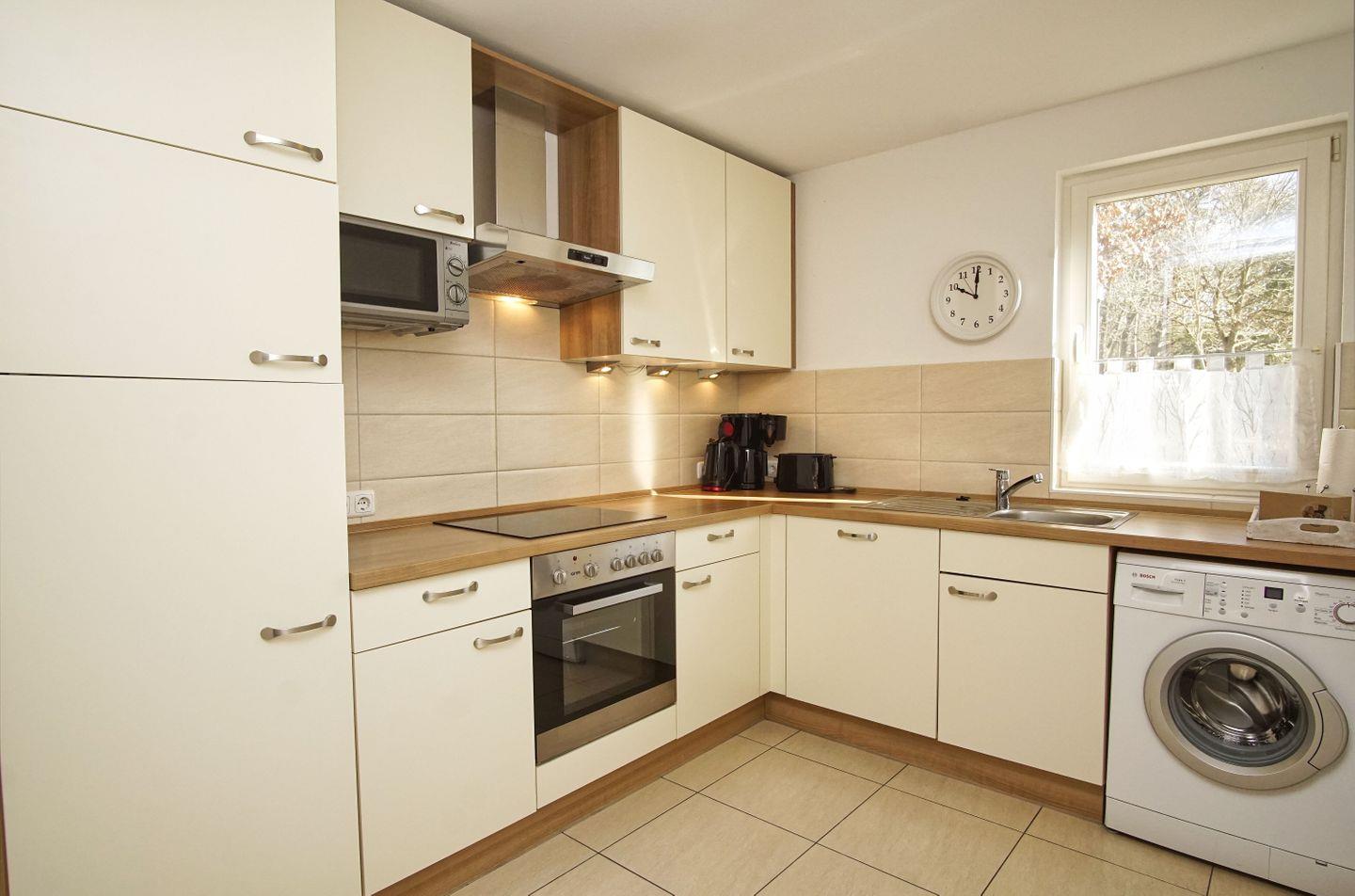 KÜCHE // separate Küche, Cerankochfeld (4-Platten), Spülmaschine, Kühlschrank mit Gefrierfach, Backofen, Mikrowelle, Toaster, Wasserkocher, Kaffeemaschine, Waschmaschine, reichlich Besteck, Geschirr und Küchenutensilien ++