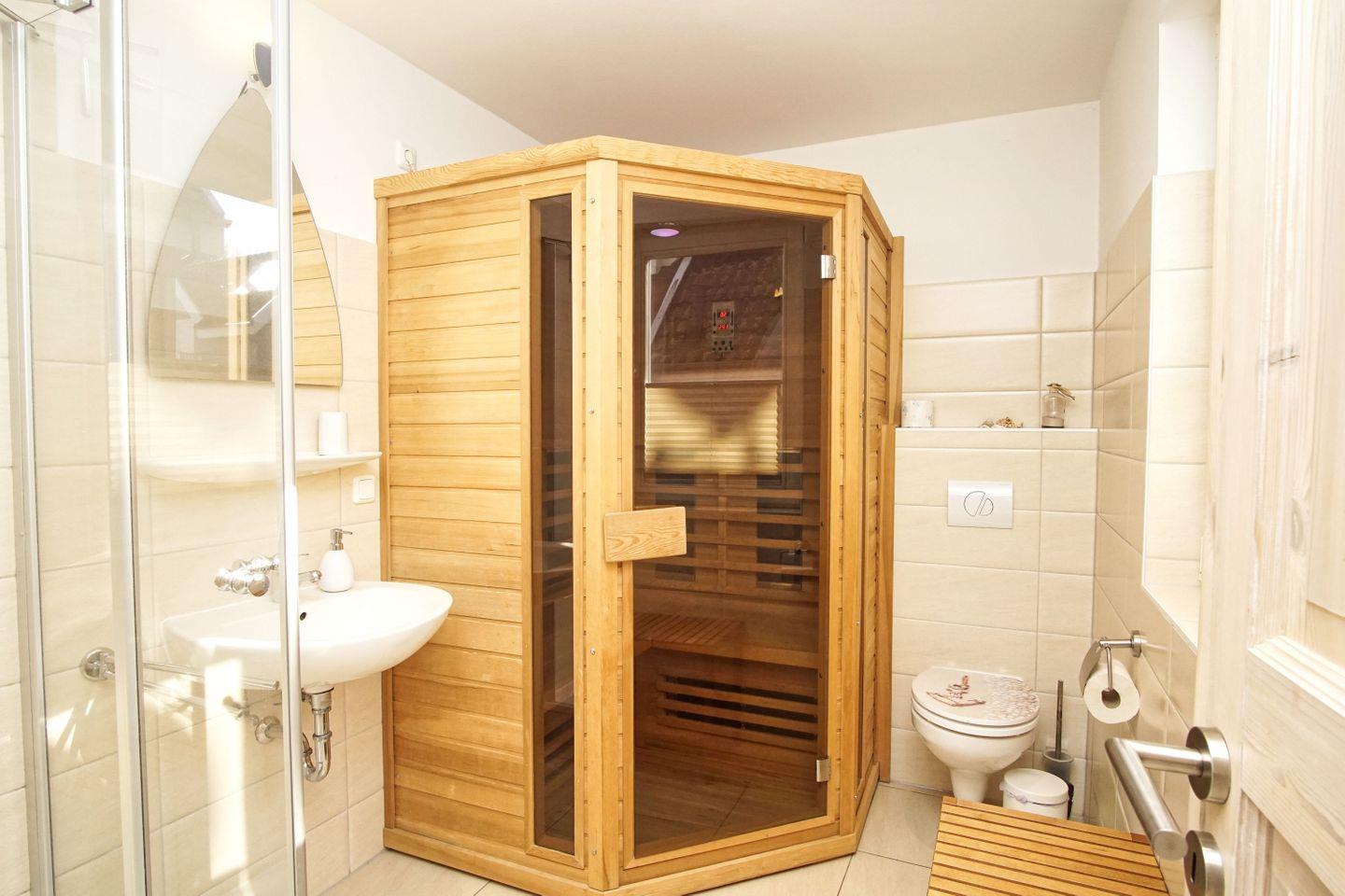 BAD // 2 Bäder mit Dusche, Whirpoolwanne, Infrarot-Sauna und WC, ein Gäste-WC ++