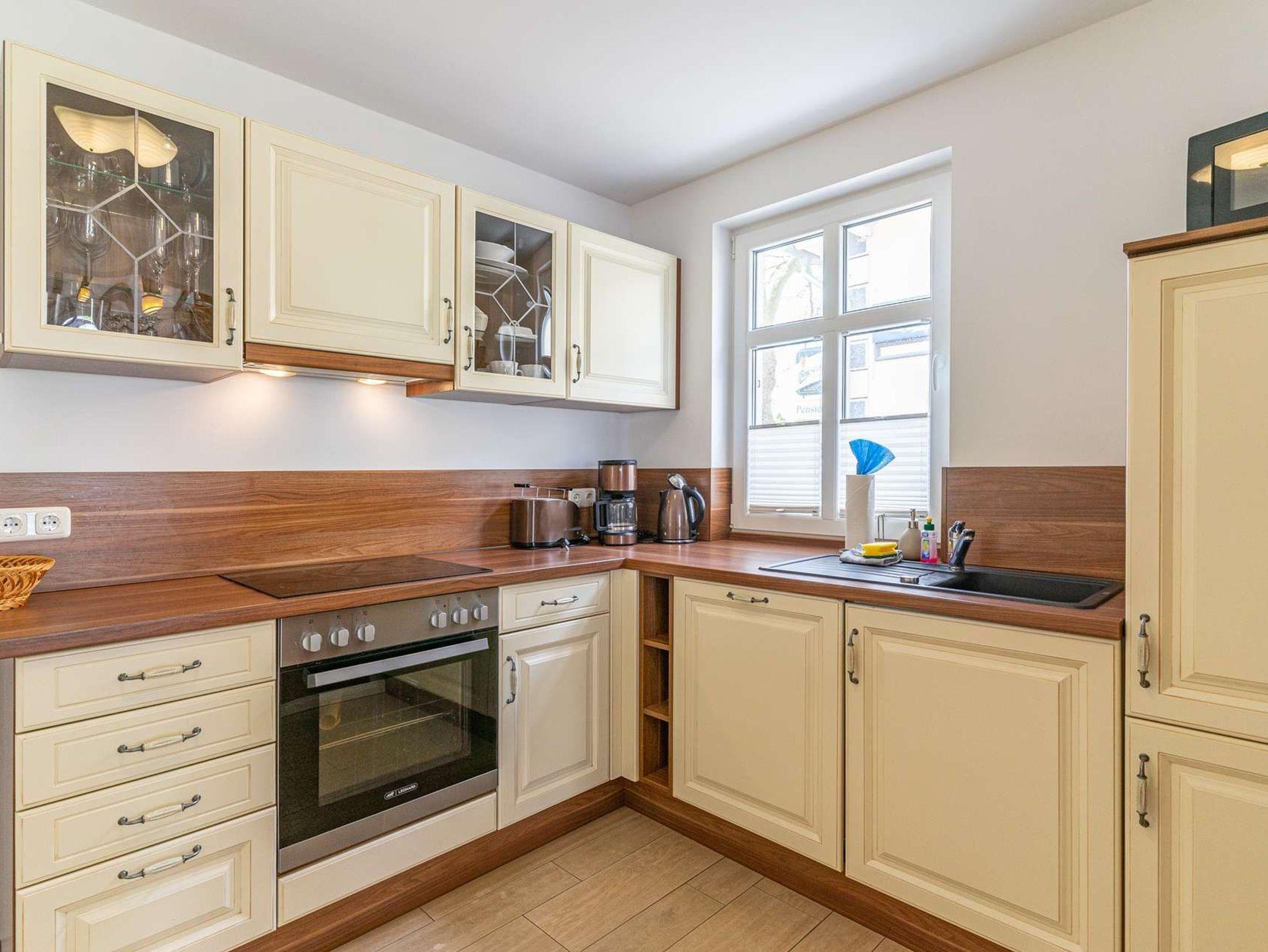 Die offene Küche die unter anderem mit einem Geschirrspüler, Kühlschrank, Cerankochfeld, Mikrowelle, Backofen, Kaffeemaschine, Wasserkocher und Toaster erstklassig ausgestattet ist, vollendet das Wohlbefinden in unseren Appartements.