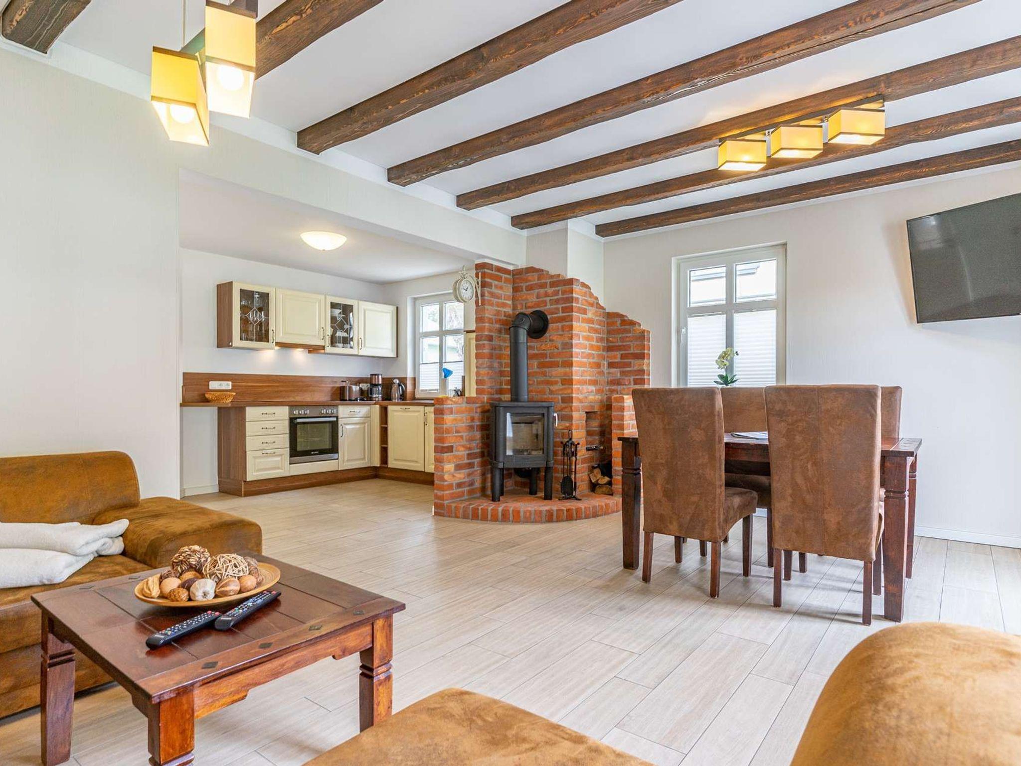 Stilvolles Ferienhaus mit Kamin, 2 Bädern und 2 Schlafzimmern in ruhiger Lage am Großen Jasmunder Bodden.