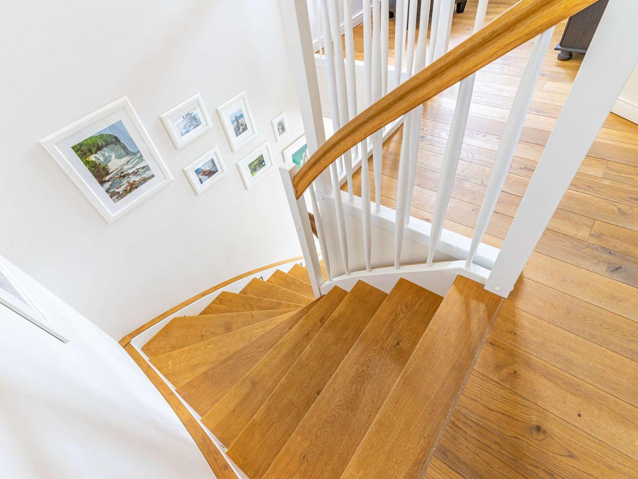 2 Schlafzimmer und 1 großes Badezimmer im Obergeschoss und 1 Gäste-WC im Erdgeschoss.
