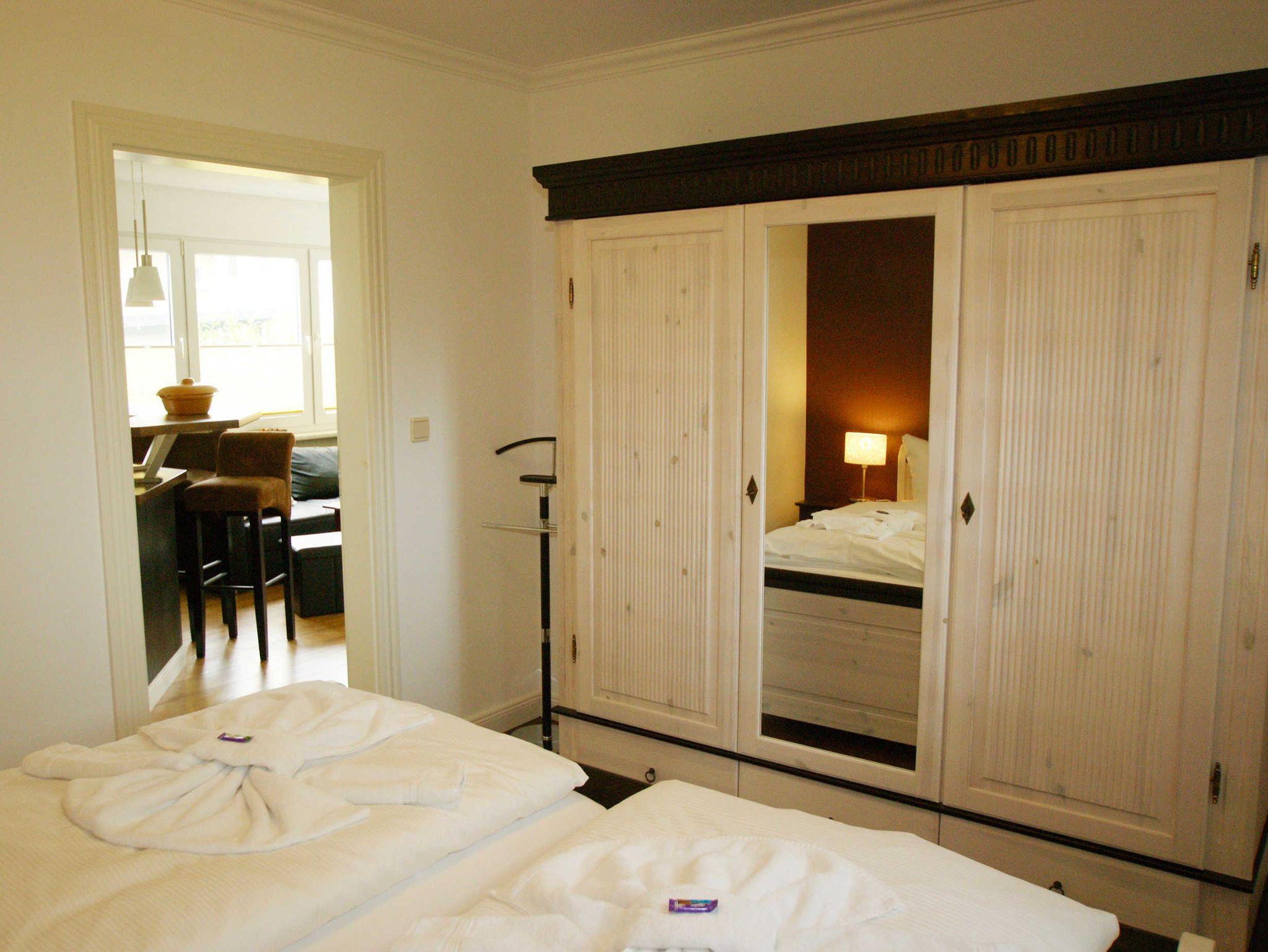 Ein Wohnzimmer mit Tresen und 3 Barhockern, SAT-HDTV, DVD-Home Entertainment-System, gemütliche Eck-Wildledercouch. In der offenen Küche mit Ceranfeld, Kühlschrank, Spüle, Geschirrspüler, div. Geschirr, Kaffeemaschine, Toaster, Wasserkocher, Mikrowelle sowie einem Eierkocher können Sie Ihr Lieblingsessen zaubern. Die 2 separaten Schlafzimmer mit einem Doppelbett, einem Einzelbett und einem großen Kleiderschrank bieten höchsten Schlafkomfort in extra höheren Betten. Das Badezimmer mit Dusche, Waschbecken, WC, Haartrockner runden den Komfort ab.