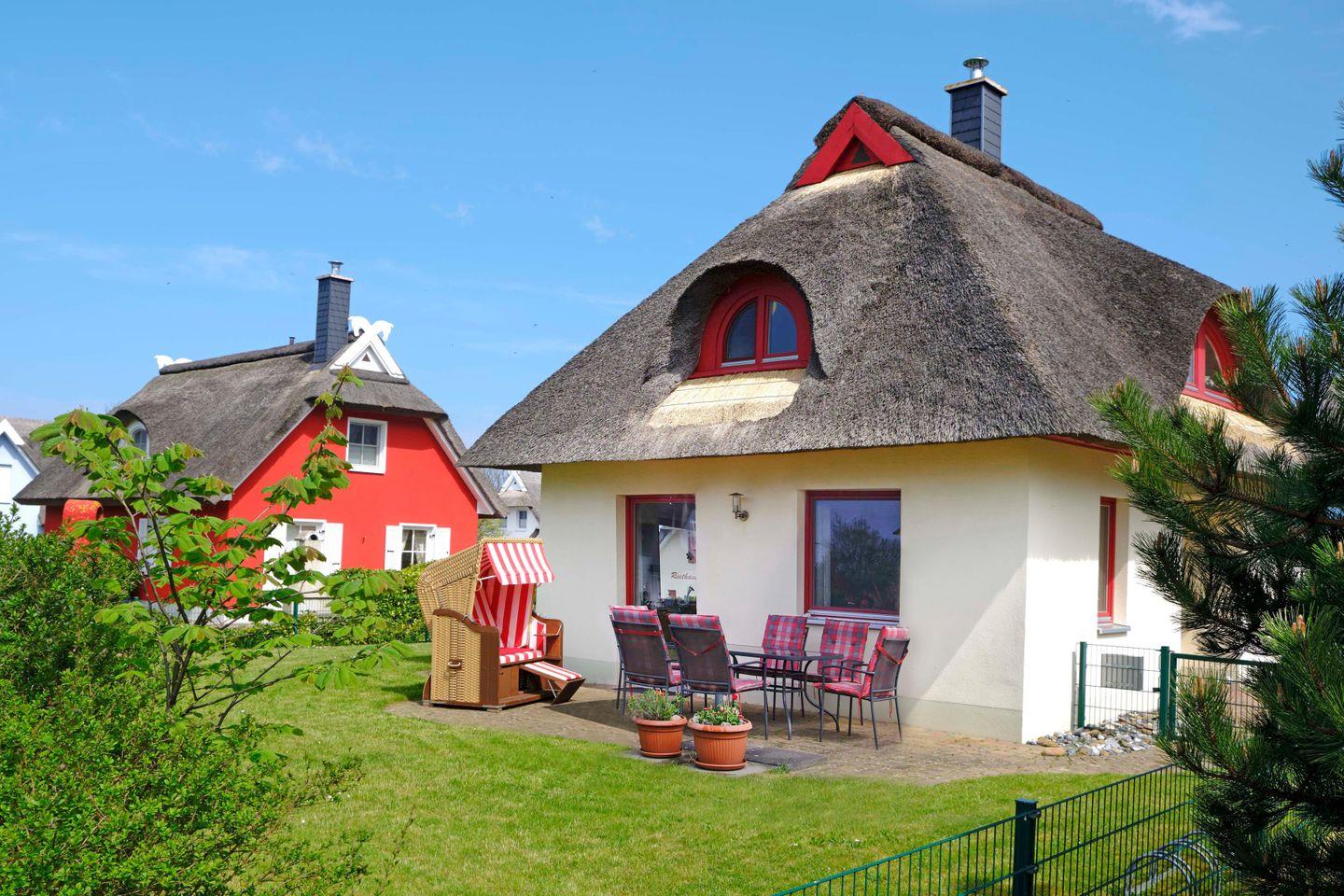 Charmantes Reetdachferienhaus "Seemöwe" auf Rügen, nahe Strand und Natur, ideal für Familien mit Hunden.