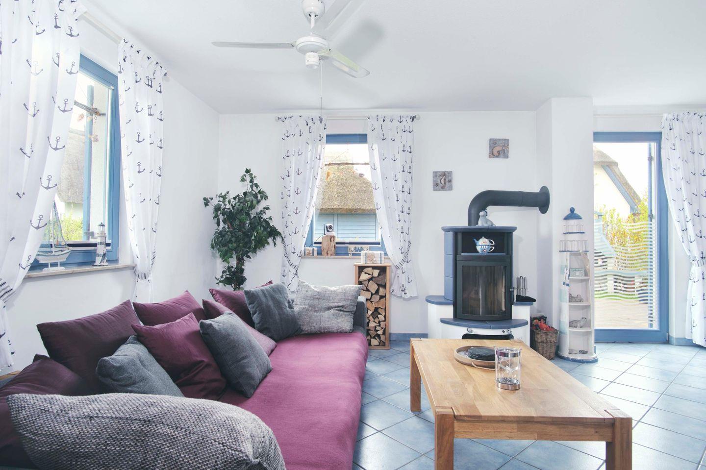Das 100 m² große, reetgedeckte Ferienhaus "Seehund" für bis zu 5 Personen befindet sich in dem kleinen Ort Glowe auf der herrlichen Sonneninsel Rügen.