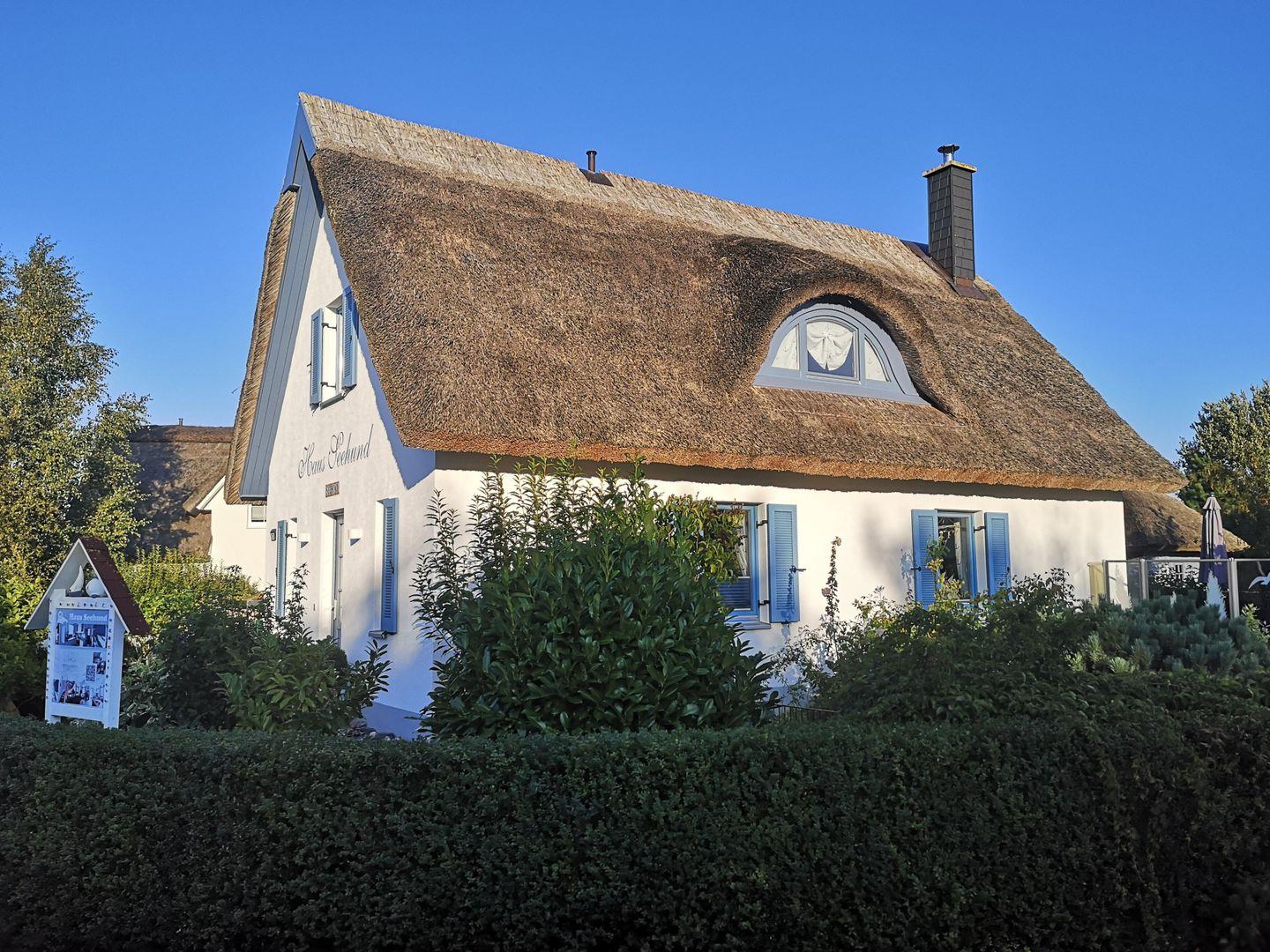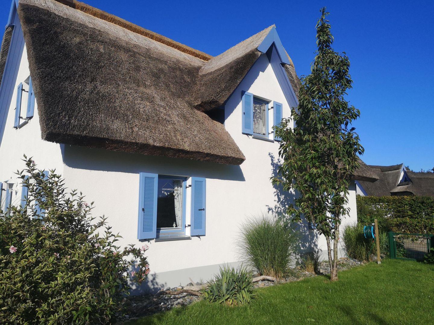 Stilvolles, reetgedecktes Ferienhaus in Glowe auf Rügen, 200 m vom Ostseestrand, mit Kamin und großem Garten.
