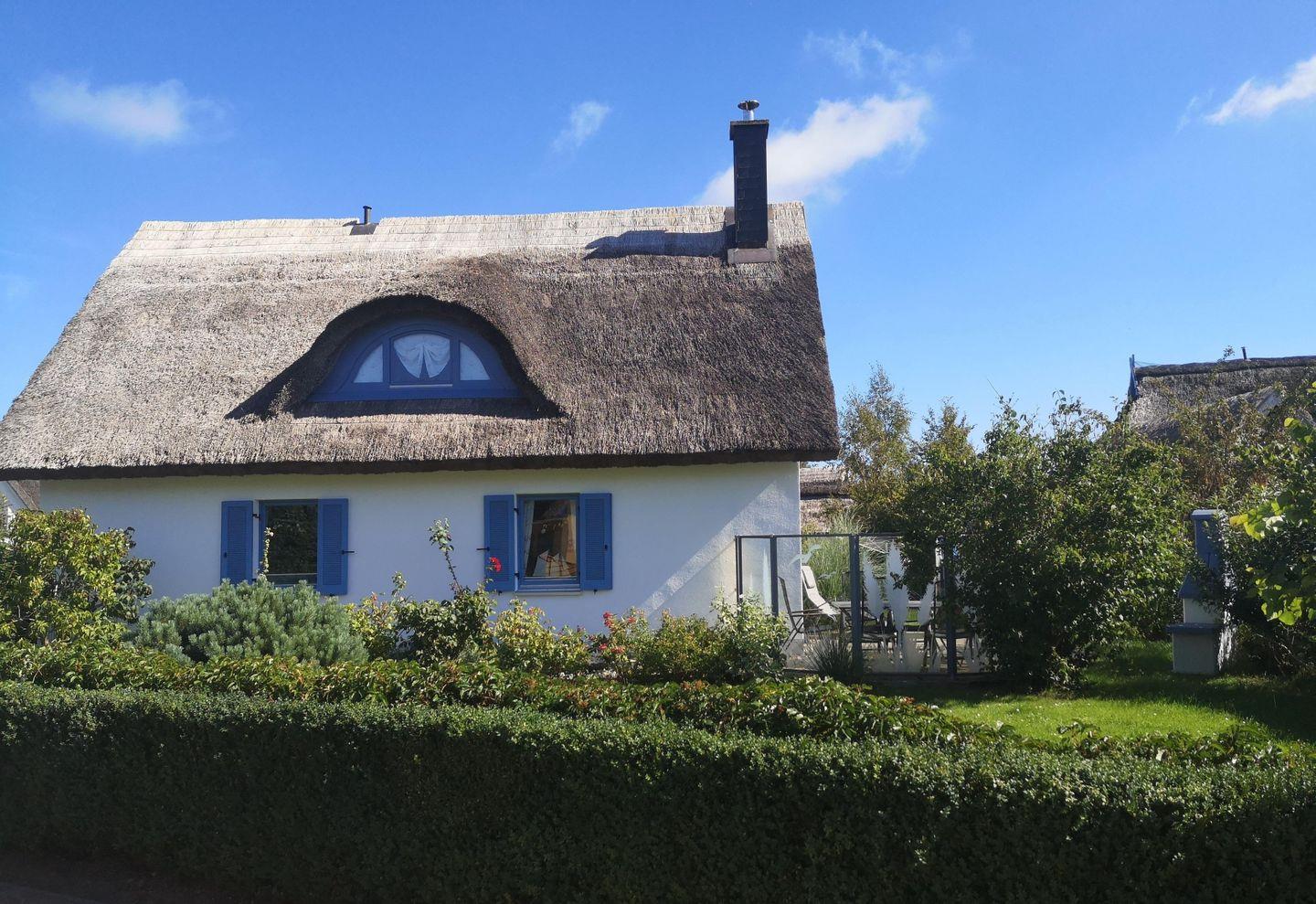 Reetgedecktes Ferienhaus mit Kamin und Garten
