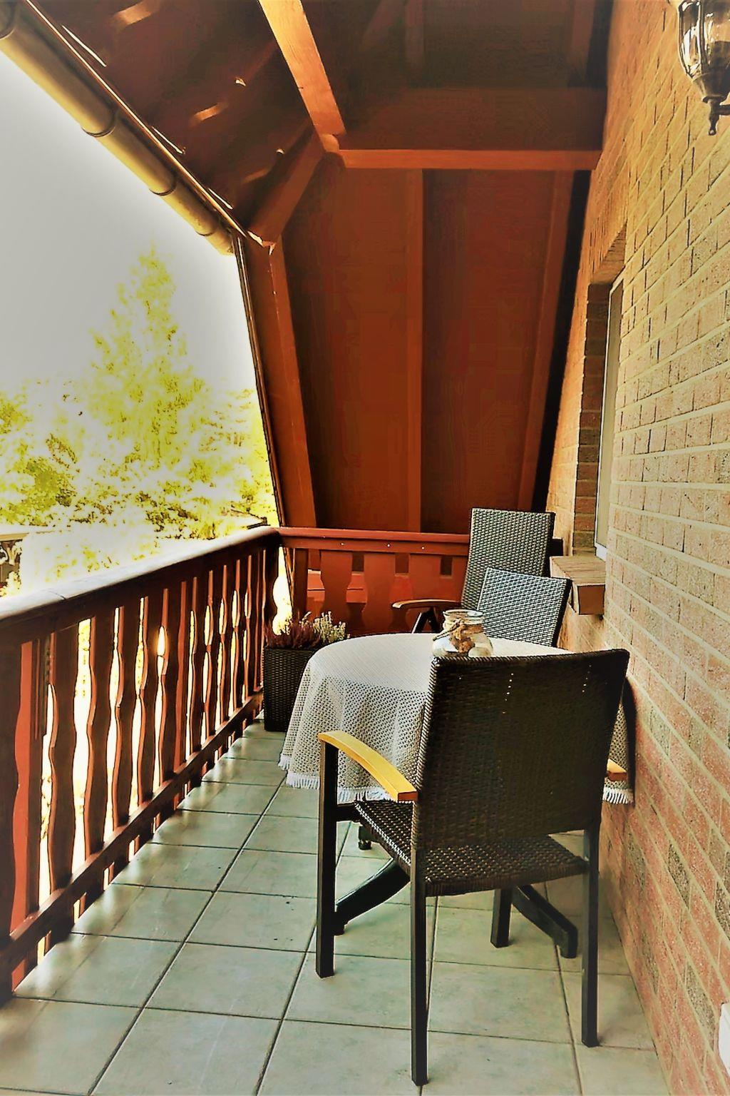 Die Ferienwohnung befindet sich im Obergeschoss unseres Einfamilienhauses, hat eine Größe von ca. 40qm und bietet Platz für 2 Personen. Sie besteht aus einem Wohn-/Schlafraum, einem Bad mit Dusche/WC, einer kleinen Kochnische und einem großen Balkon - unser Urteil: ***!. Ein separater Schlafraum (ca. 10qm) kann auf Wunsch zusätzlich gemietet werden.