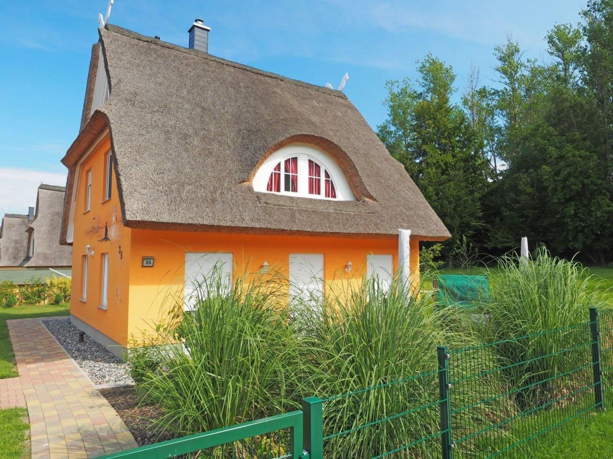 Modernes Reetdachhaus Freddy in Glowe, nahe Ostseestrand, ideal für Familien mit großzügiger Terrasse und Garten.