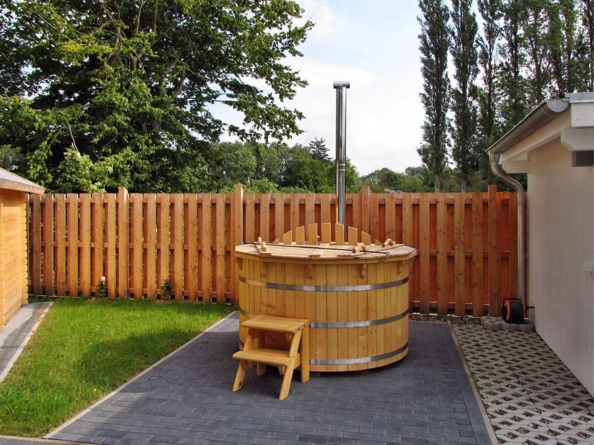 Im Anschluss an das Carport befindet sich der ansprechende Wellnessbereich, mit einem Badebottich, in dem Sie im warmen Wasser sorgenfrei entspannen können, zu zweit oder mit der ganzen Familie - Baden unter freiem Himmel das ganze Jahr hindurch. Der Badebottich wird durch einen Holzofen beheizt. Die Benutzung des Badebottich`s ist gegen Gebühr möglich und muß vorher beim Hausmeisterdienst angemeldet werden.
