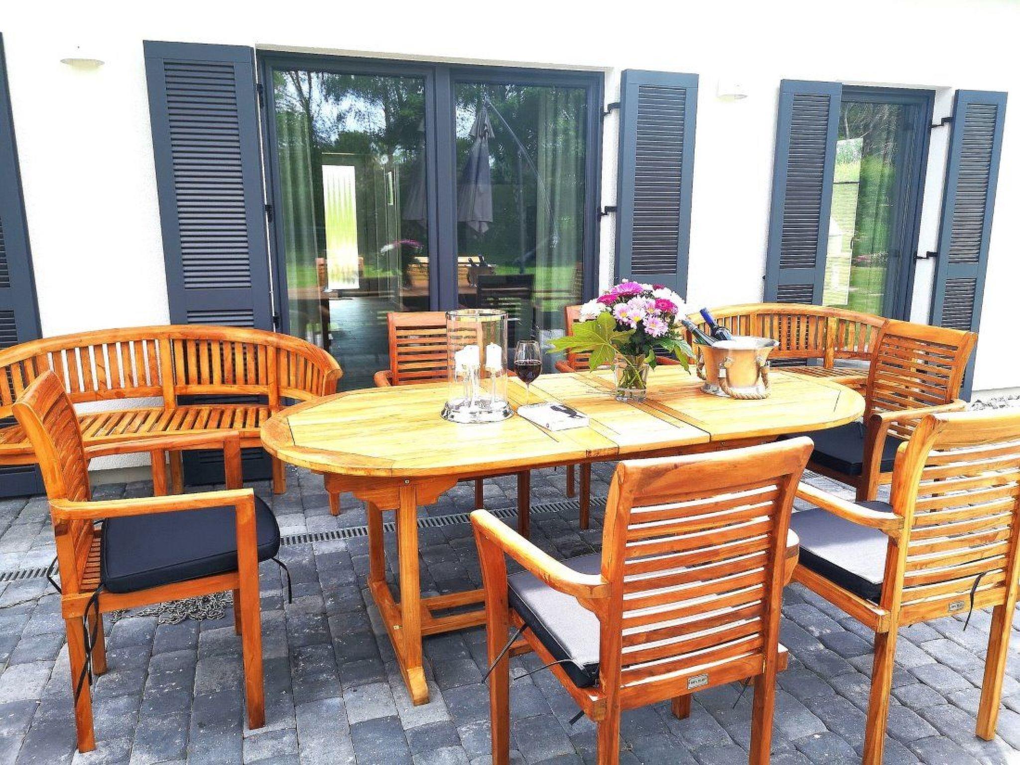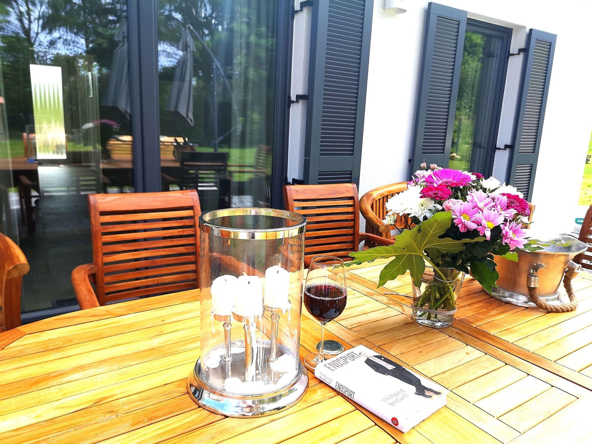 Der Außenbereich des Ferienhauses ist ein absolutes Highlight. Ein großzügig angelegter, komplett eingezäunter Garten lädt zum Verweilen und Entspannen ein – ideal für Gäste mit Hund. Auf den zwei Terrassen mit hochwertigen Teakholzmöbeln können Sie die Seele baumeln lassen und die ländliche Ruhe genießen. Der direkte Zugang zum Wald eröffnet zusätzliche Möglichkeiten für Spaziergänge und Entdeckungstouren in der Natur.
