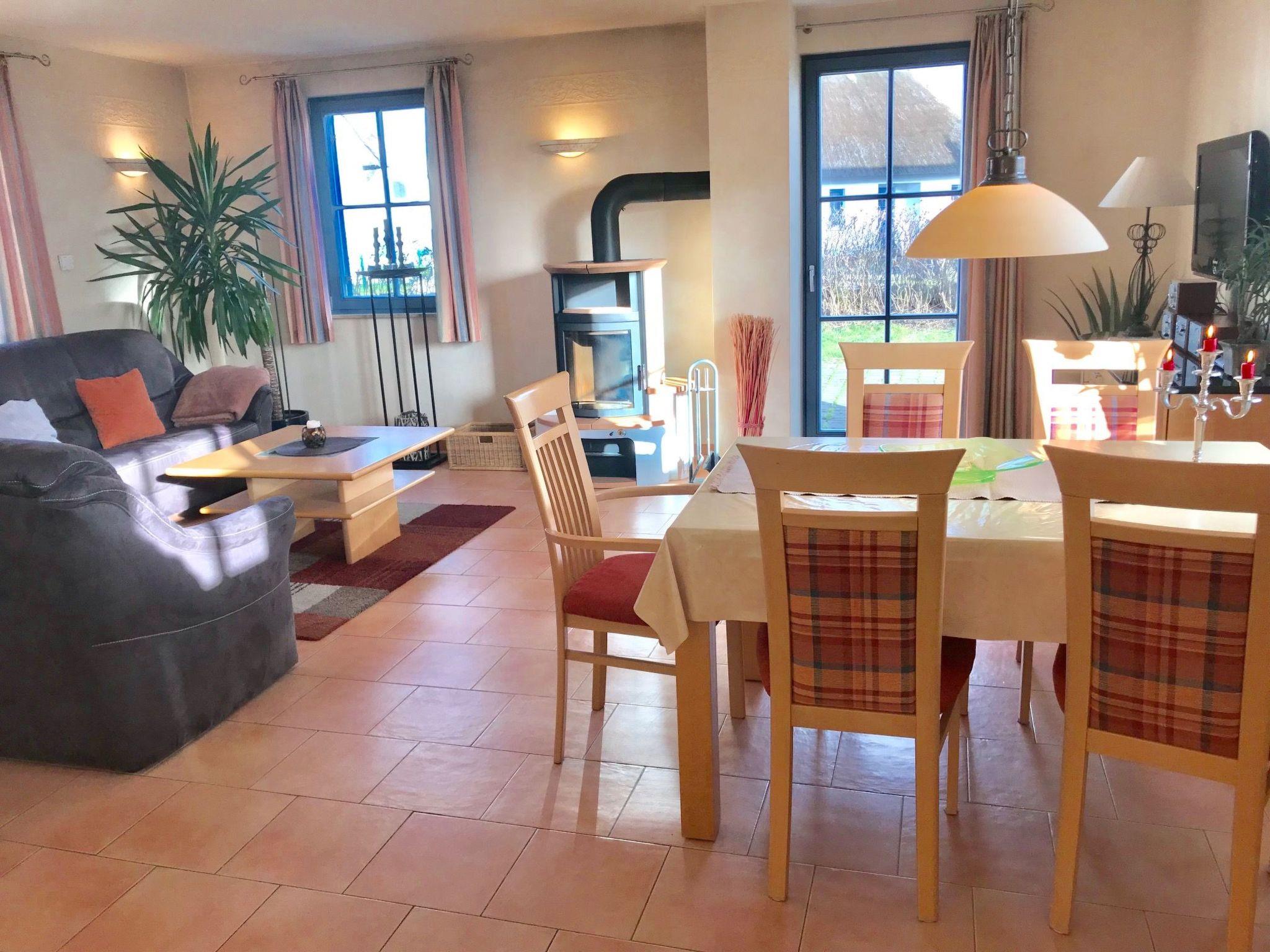Sauna, Waschmaschine, Kamin, zwei Bäder, Terrasse mit Strandkorb und Terrassenmöbeln, zwei Schlafzimmer mit jeweils einem Doppelbett, Waschmaschine. (Münzautomat) 2 Pkw-Stellplätze. Das Grundstück ist eingefriedet mit einem Friesenwall und Bauernrosen, WLAN.