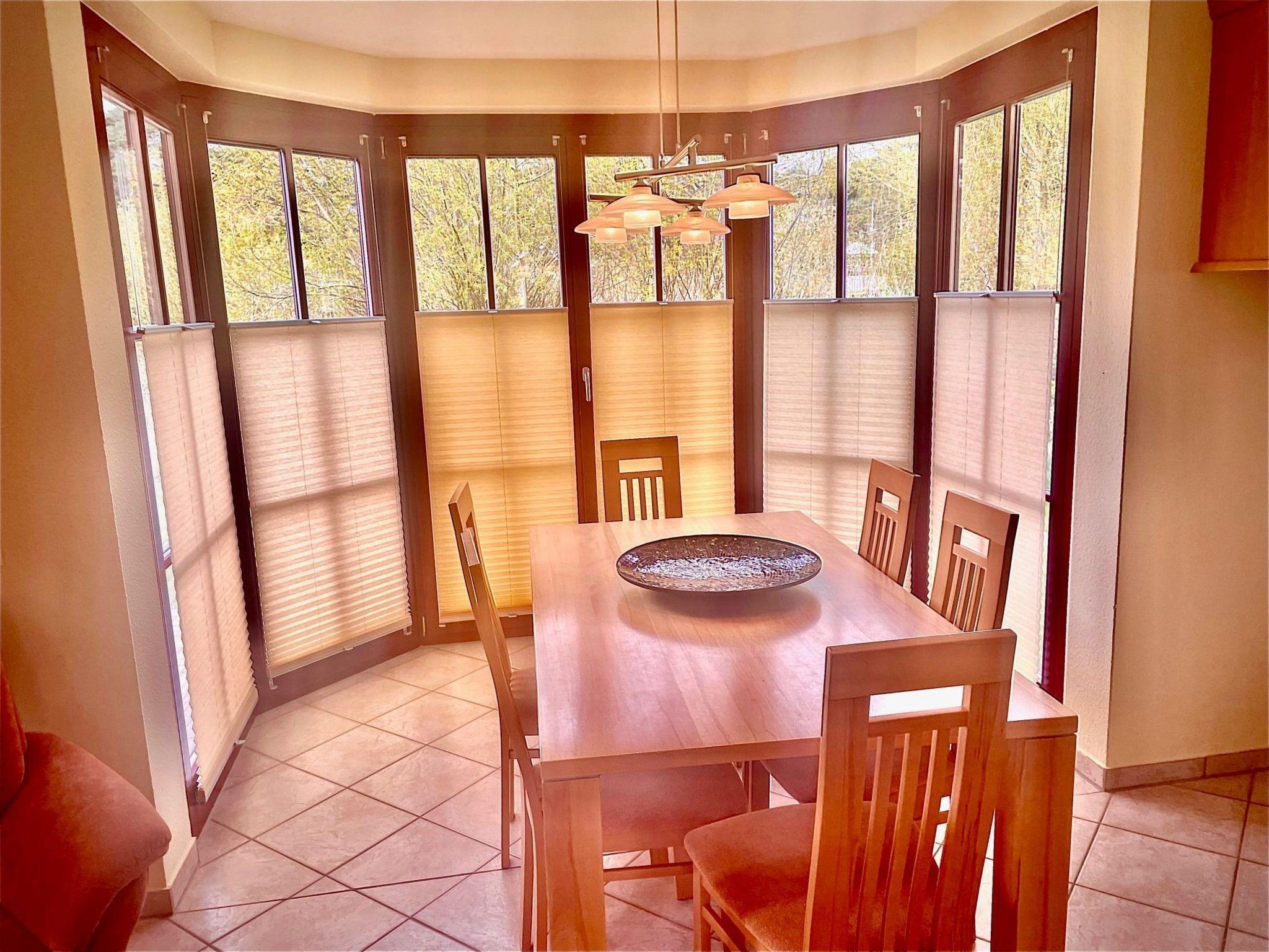 drei Schlafzimmer mit fünf Betten, zwei Bäder Wohn Essz Küche Kamin Waschmaschine Balkon und Terrasse mit Terrassenmöbel. Zwei PKW Stellplätze am Haus.