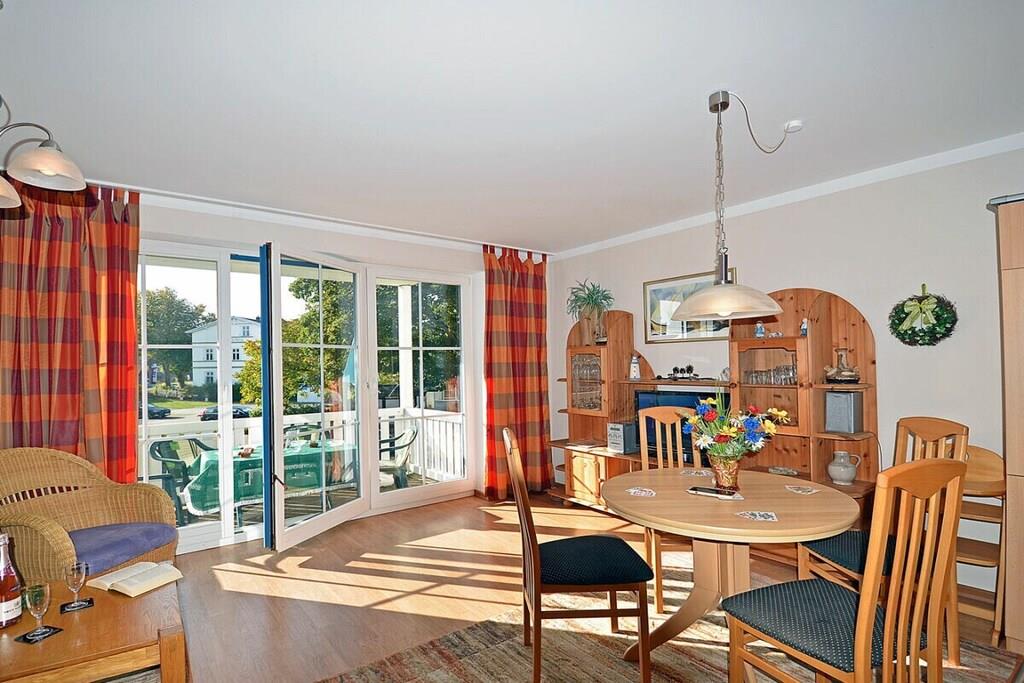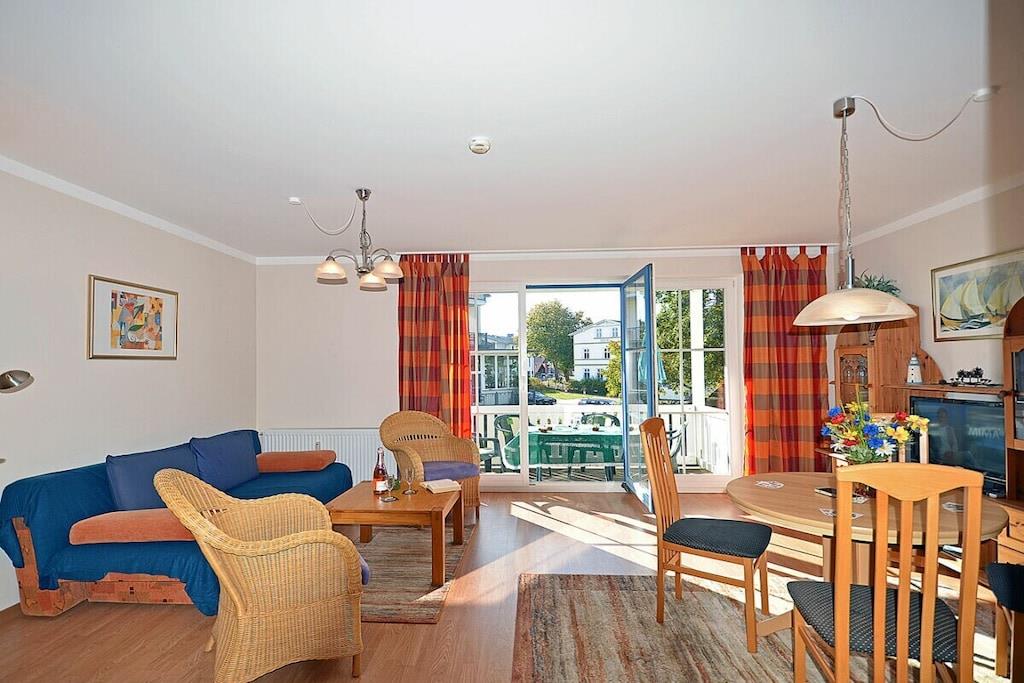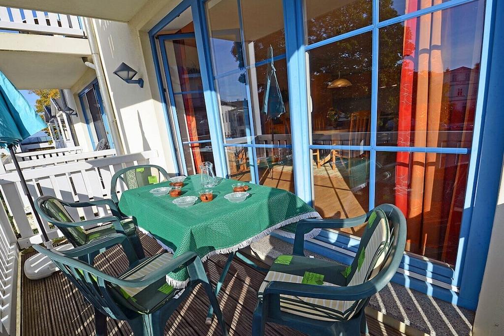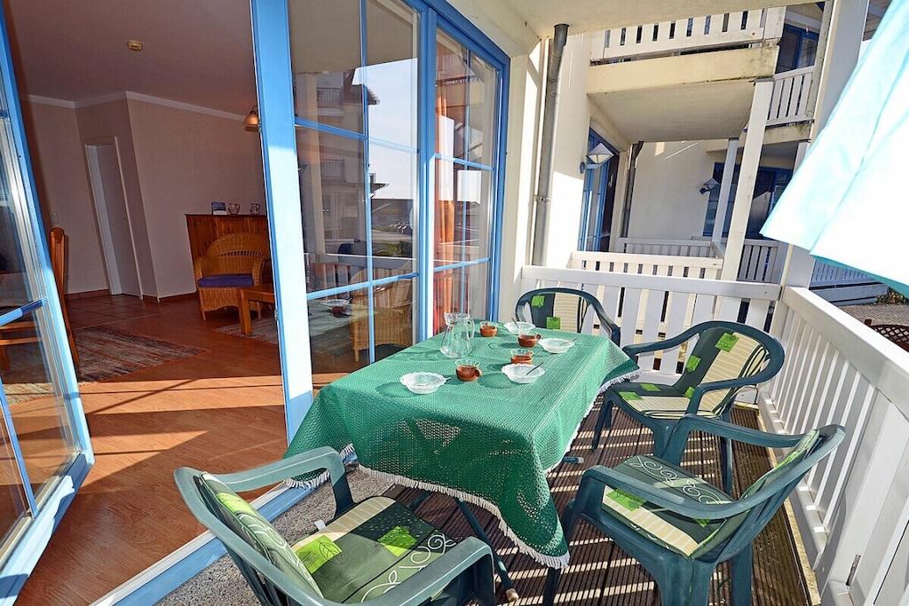 Gemütliche Ferienwohnung in Glowe mit Balkon, moderner Küche und Schwimmbecken für entspannte Urlaubstage.