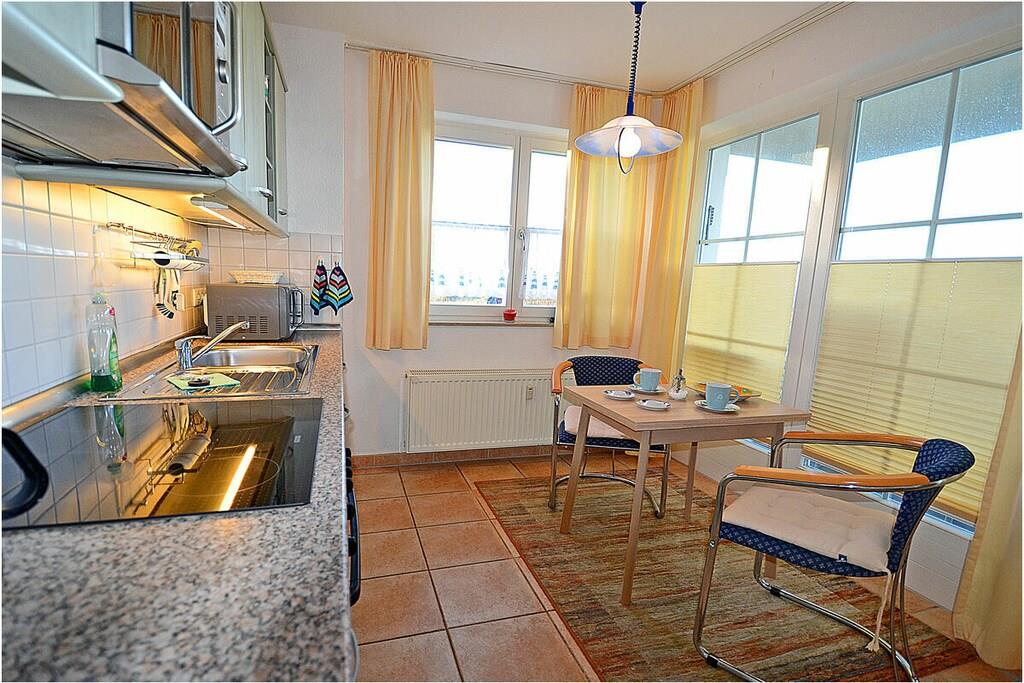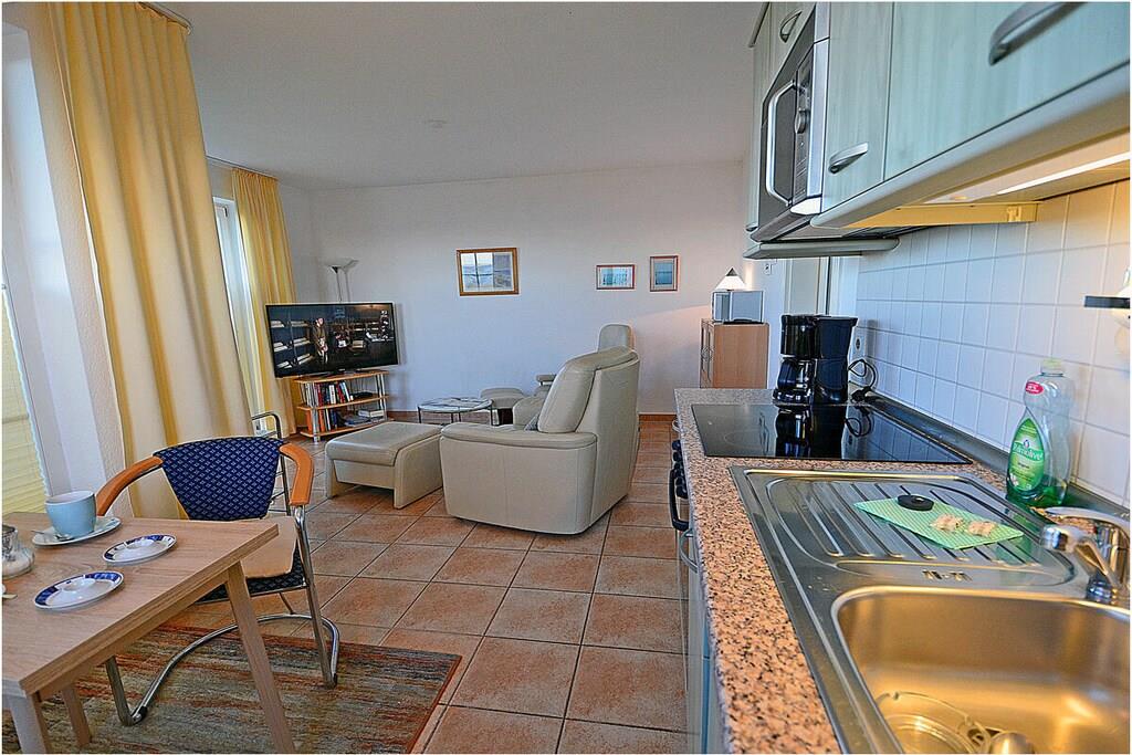 Moderner Wohn- Essbereich, gemütliche Couchlandschaft, TV/ Sat, Radio, Bücher und Gesellschaftsspiele für gemütliche Abende, komplett ausgestattete Küche mit 4- Plattenherd (Ceranfeld), Backofen, Kühlschrank mit kleinem Gefrierfach, Geschirrspüler, Mikrowelle und diversen Elektrogeräten, Bad mit Dusche / WC und Fußbodenheizung, Waschmaschine (ohne Gebühr), Schlafzimmer mit Doppelbett (2 Matratzen je 90×200) und Kleiderschrank, separater Abstellraum mit Wäscheständer und Staubsauger Balkon mit Meerblick, 2x Gartenstühle und Gartentisch Romantikurlaub in der – Villa Bolte 21 – direkt am Ostseestrand! Die Ferienwohnung ist liebevoll eingerichtet. Die voll ausgestattete Küche lässt keine Wünsche offen. Der Balkon (Zugang vom Wohn- und Küchenbereich) mit herrlichem Bick auf die Ostsee lädt zum Verweilen ein, der Außenbereich ist mit einer Grillmöglichkeit versehen. Die Ferienwohnung Villa Bolte 21 ist ein Nichtraucherquartier. Der PKW-Stellplatz mit der Nr. 21 befindet sich direkt am Objekt. Abschließbare – Abstellmöglichkeiten (Gemeinschaftskeller) für Fahrräder sind vorhanden. Einkaufsmöglichkeiten, Bäcker, Restaurant und ein Fahrradverleih sind in unmittelbarer Nähe. Der Hafen Glowe ist nur 5 min Fußweg von der Ferienwohnung entfernt. Optimale Rad- und Wandermöglichkeiten um die Insel zu erkunden, runden das Angebot ab. Hunde sind nach Absprache herzlich willkommen (Gebühr Euro 5,-/ pro Hund/ pro Nacht). Der Hundestrand ist in der Nähe.