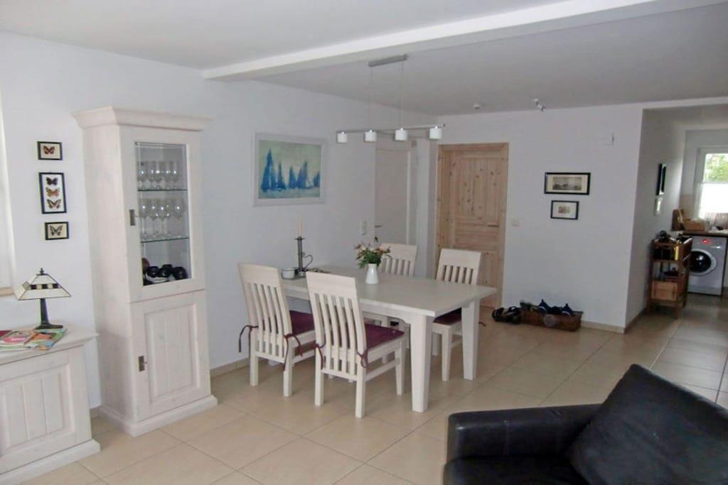 Erholungsort Glowe, über 2 Etagen, ca. 800 m zum Sandstrand (Ostsee), ca. 2 km zum Bodden Im romantischen und beschaulichen Fischerort Glowe liegt diese neue im skandinavischen Stil erbaute Doppelhaushälfte in absoluter ruhiger Lage in einem Waldschutzgebiet. Mit seinem großzügigen Raumangebot haben bis zu 4 Personen über zwei Etagen ausreichend Platz. Eigener PKW-Stellplatz (direkt am Haus) sowie einer großen möblierte Terrasse, die nach einem tollen Strandtag, zum relaxen einlädt, steht Ihnen zur Verfügung. Oder lassen Sie an kalten Wintertagen, nach einem Saunagang bei einem Glas Rotwein am Kaminofen, den Tag ausklingen. Mit seinen zwei Schlafzimmern und seiner hochwertigen modernen Ausstattung bietet das Haus allen nur erdenklichen Komfort. Von Glowe haben Sie einen optimalen Ausgangspunkt und können durch das gut ausgebaute Rad- und Wanderwegenetz umfangreiche Radtouren und Wanderungen vornehmen. In nur wenigen Gehminuten (800m) erreichen Sie den 10km langen weißen Sandstrand (Schaabe) der Ostsee. Dieser lädt zum Baden und relaxen ein. Erdgeschoss: großzügiger Wohn-Essbereich mit Fußbodenheizung und Kamin, Couchlandschaft mit TV/Sat (Flatscreen), Blu-ray Player, komplett ausgestattete Einbauküche mit Waschmaschine, 4-Plattenherd (Ceranfeld), Backofen, Kühlschrank mit kleinem Gefrierfach, Mikrowelle, Geschirrspüler und diverse Elektrogeräte, ein Bad mit Infrarotsauna, Dusche und WC Obergeschoss: Ein Schlafzimmer mit Doppelbett und Kleiderschrank, zweites Schlafzimmer mit zwei Einzelbetten und Kleiderschrank, Bad mit Badewanne und WC Terrasse mit Gartenmöbeln und Sonnenschirm Infrarotsauna ohne Gebühr, Waschmaschine ohne Gebühr, Haustiere sind nicht erlaubt. Fußböden im EG mit Fußbodenheizung gefliest, Fußböden OG mit Laminat, daher sehr allergikerfreundlich, Nichtraucherhaus, HotSpot (SSID)/ WLAN ist kostenlos zubuchbar, Kinderbett und Kinderhochstuhl vorhanden, Ein PKW-Stellplatz am Haus