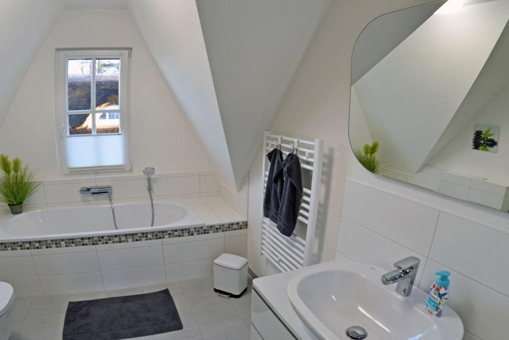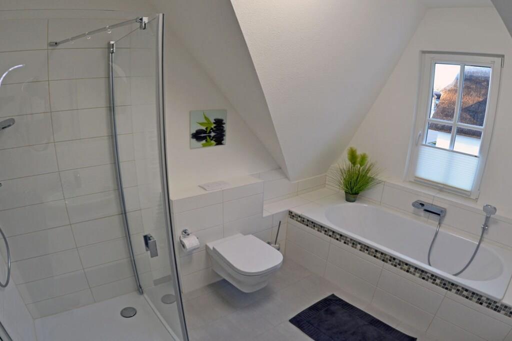 Erholungsort Glowe, über 2 Etagen, ruhige Lage, ca. 500 m zum Sandstrand (Ostsee), ca. 1 km zum Bodden Erdgeschoss: großzügiger Wohn- Essbereich mit Fußbodenheizung und Kamin, gemütliche Couchlandschaft, TV/ Sat (Flatscreen), DVD Player mit diversen DVD`s, Radio/CD, WLan kostenfrei vorhanden, separate komplett ausgestattete moderne Einbauküche mit Tresentisch und 5 Hocker, 4- Plattenherd (Ceranfeld), Backofen, Kühlschrank mit kleinem Gefrierfach, Geschirrspüler und diversen Elektrogeräten, Sauna-Bad mit ebenerdiger Dusche und WC, Obergeschoss: 1. Schlafzimmer mit komfortablen Boxspringbett (180 x 200 durchgehende Matratze), TV (Flatscreen) und Kleiderschrank, 2. Schlafzimmer ebenfalls mit komfortablen Boxspringbett (160 x 200 durchgehende Matratze) und 1 Couch mit Schlaffunktion(90 x 180), Kleiderschrank, hochwertiges Bad mit Badewanne, Regendusche und WC, Terrasse mit 6 Gartenstühle und 2 Liegestühle, Sonnenschirm und Grill vorhanden Erstvermietung Dezember 2016 - Ein perfekter Urlaubstraum zum Entspannen und Genießen ” Reetdachgedecktes Haus, umzäuntes Grundstück ca. 700 qm, zur Straße durch Friesenwall abgegrenzt, Nichtraucher, WLan kostenfrei vorhanden, Fußbodenheizung im gesamten Haus, Wirtschaftraum mit Waschmaschine und Trockner ohne Gebühr, Bügeleisen und Bügelbrett vorhanden, Insektenschutz in den Schlafräumen, Wohn- und Küchenbereich vorhanden, Abstellmöglichkeit für Fahrräder im Gartenhaus, 2 PKW- Stellplätze am Haus, Einkaufsmöglichkeiten, Bäcker und Restaurant in unmittelbarer Nähe, optimale Rad- und Wandermöglichkeiten, Hunde nach Absprache (Gebühr Euro 10,-/ pro Hund/pro Nacht)