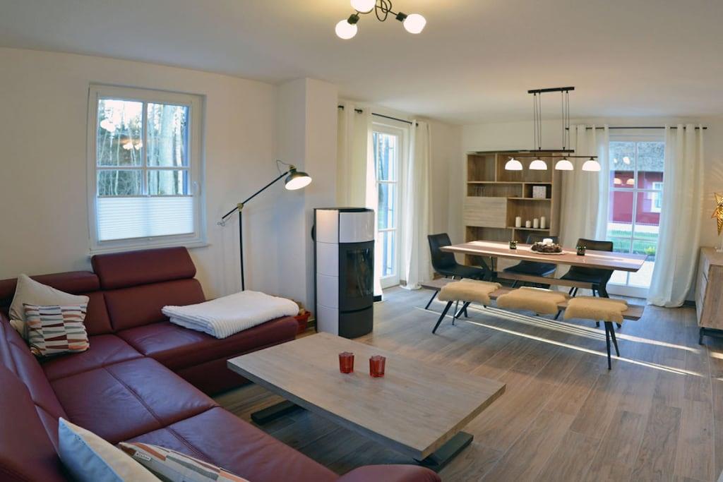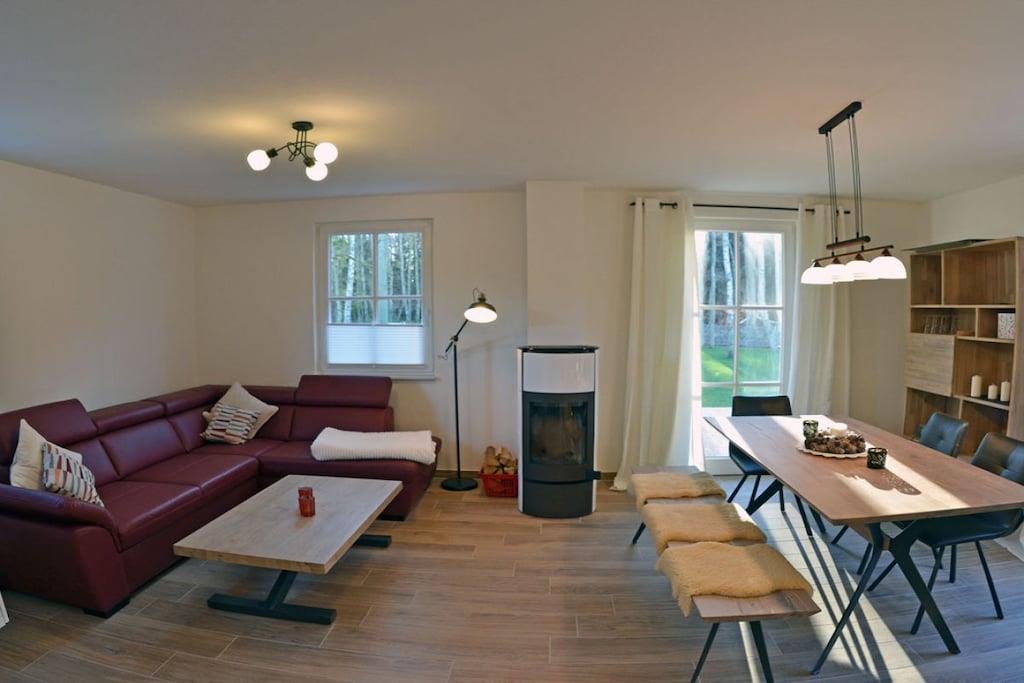 Komfortables Ferienhaus in Glowe, nur 500 m vom Sandstrand der Ostsee entfernt, mit Sauna, Kamin und großer Terrasse.